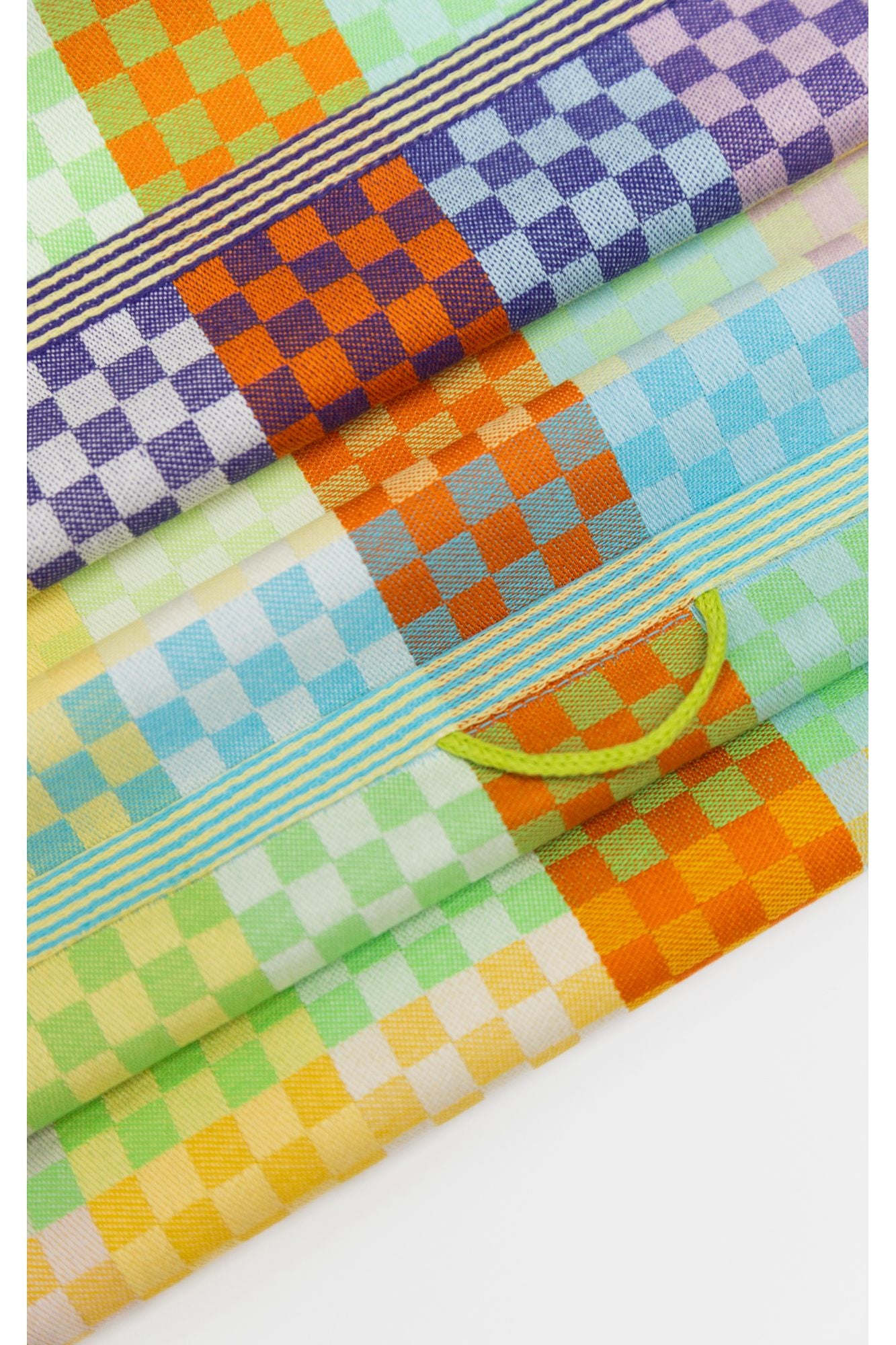 Maak van afwassen een feestje met de tea towel #58B checkered check van Foekje Fleur! Deze vrolijke theedoek is gemaakt van 100% katoen en heeft een uniek geruit patroon in onverwachte kleurencombinaties. Foekje Fleur maakt al haar Odds & Ends textiel van restmateriaal, wat zorgt voor een duurzame en speelse toevoeging aan je keuken. De theedoek (50 x 70 cm) is met liefde gemaakt in Portugal en is super absorberend. Een kleurrijke en vriendelijke helper voor elke dag!