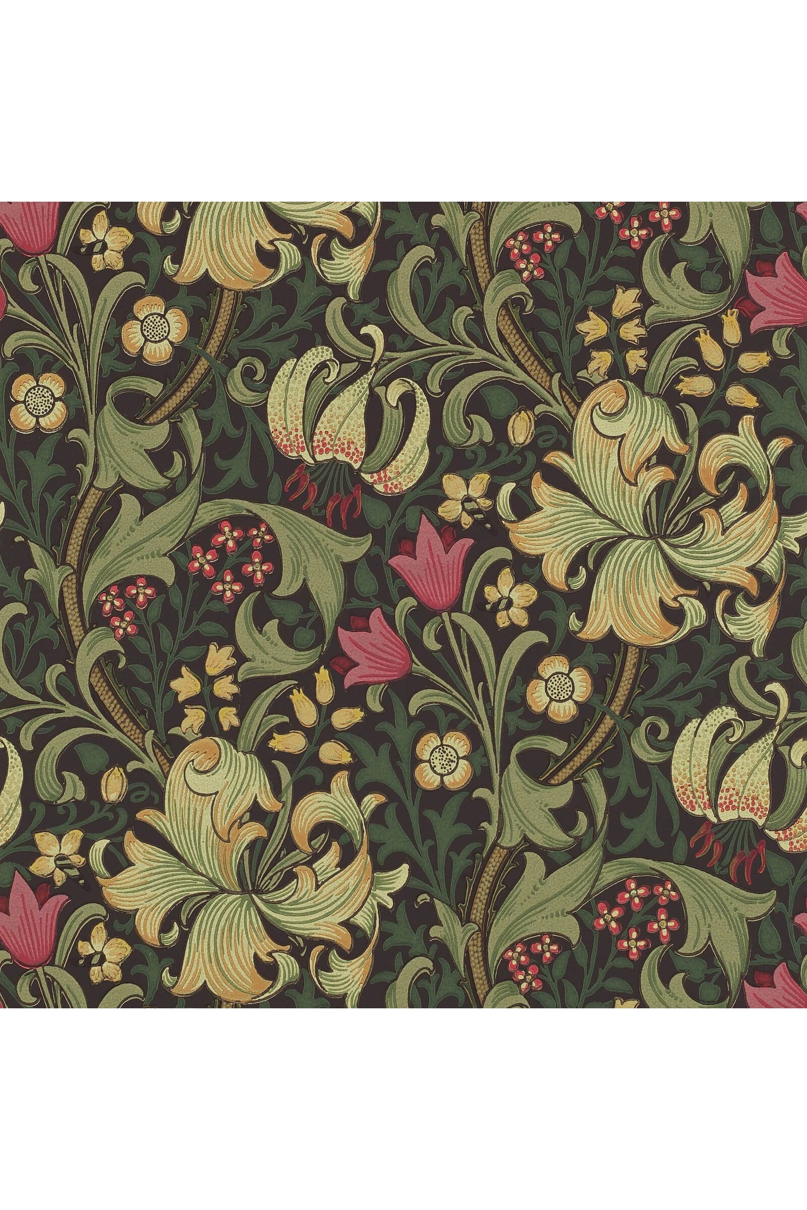Transformeer de kinderkamer met dit betoverende Golden Lily behang van Morris & Co! Het iconische ontwerp van J.H. Dearle uit 1899, met sierlijke leliestengels en ranken, creëert een vrolijke en rustgevende sfeer. Perfect voor kleine dromers en avonturiers. Geef de kamer van je kleintje een vleugje tijdloze schoonheid met dit charmante Charcoal/Olive behang. Een prachtige achtergrond voor uren speelplezier en zoete dromen!