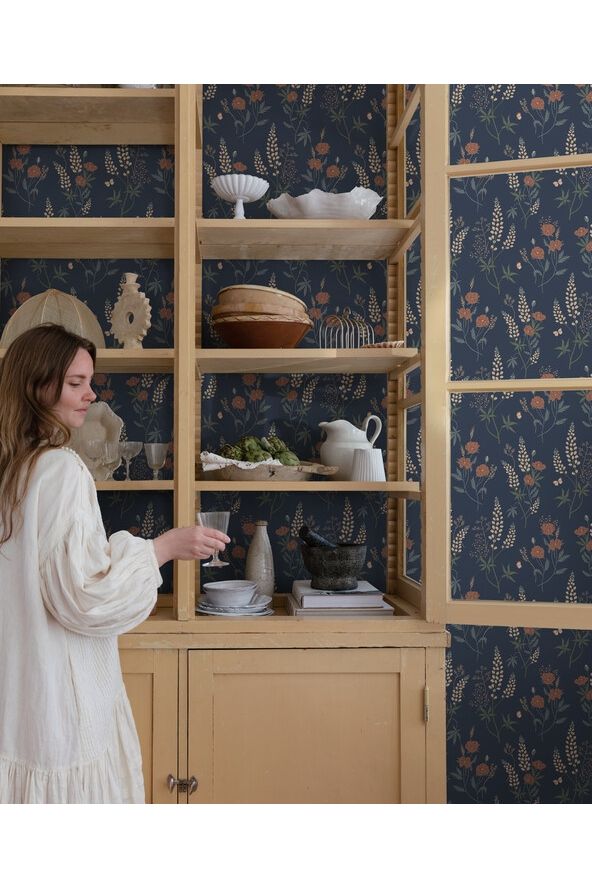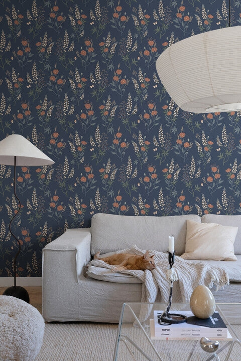 Droom weg bij behang Emma, Classic Blue van Sandberg! Een vrolijke zomerweide met wuivende lupines en klaprozen, ontworpen door Sara Bergqvist. Perfect voor de kinderkamer waar fantasie en avontuur samenkomen! Dit Zweedse behang brengt een zacht, tijdloos gevoel in huis. Creëer een rustgevende en inspirerende plek voor jouw kleintje om te groeien en spelen. Gemaakt met liefde en kwaliteit, voor de mooiste kinderdromen.