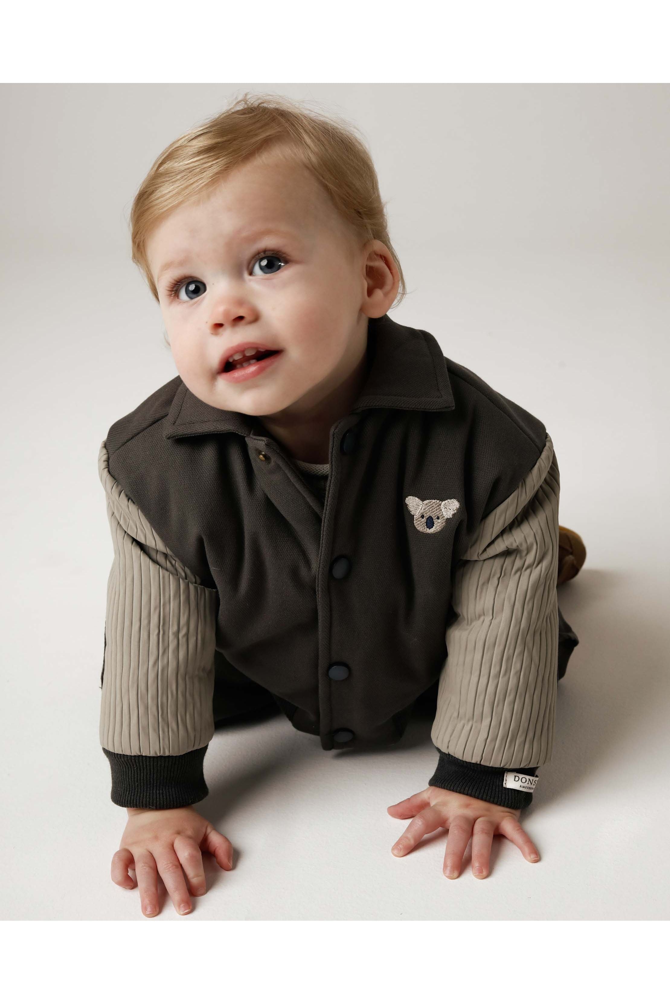 Dit is de Pidas Bomber Jacket met Koala van Donsje Amsterdam, het perfecte stoere én zachte jasje voor jouw kleintje! Dit bomberjack is heerlijk comfortabel en super stijlvol, met die kenmerkende sportieve kraag en elastische boorden.