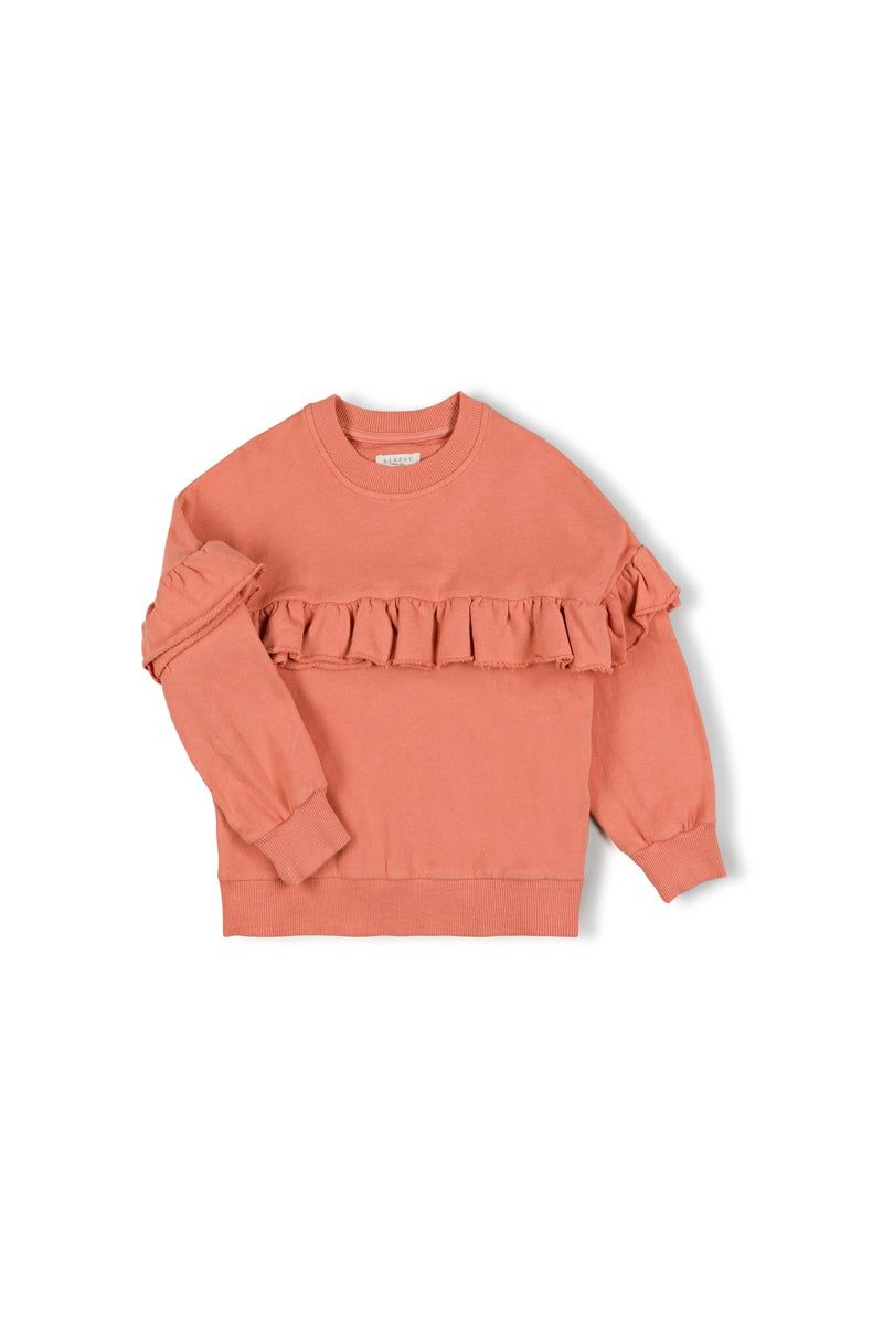 Wat een snoepje van een trui! Deze Tot sweater van Nixnut in de warme kleur 'Spice' heeft schattige, meisjesachtige details. Gemaakt van heerlijk zacht american fleece 100% biologisch katoen is hij super comfortabel. De trui is afgewerkt met het kenmerkende leren Nixnut label op de achterkant. Perfect om eindeloos te combineren met een leuke broek of rok!
