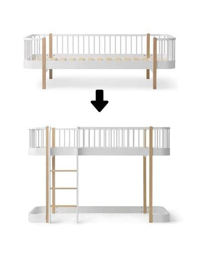 Wood Conversion kit Original low loft bed/Loft bed ladder bed end to bunk bed ladder front, white/oak