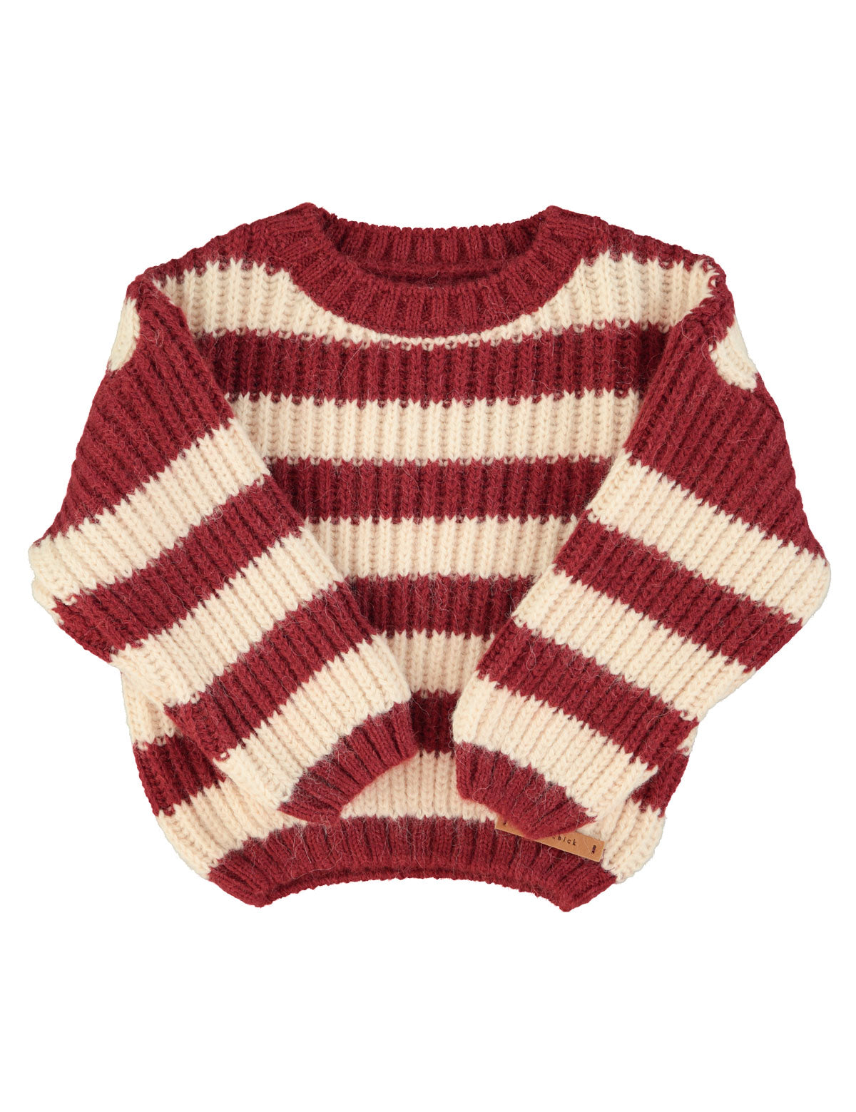 Baby Knitted sweater - Bordeaux and light pink stripes