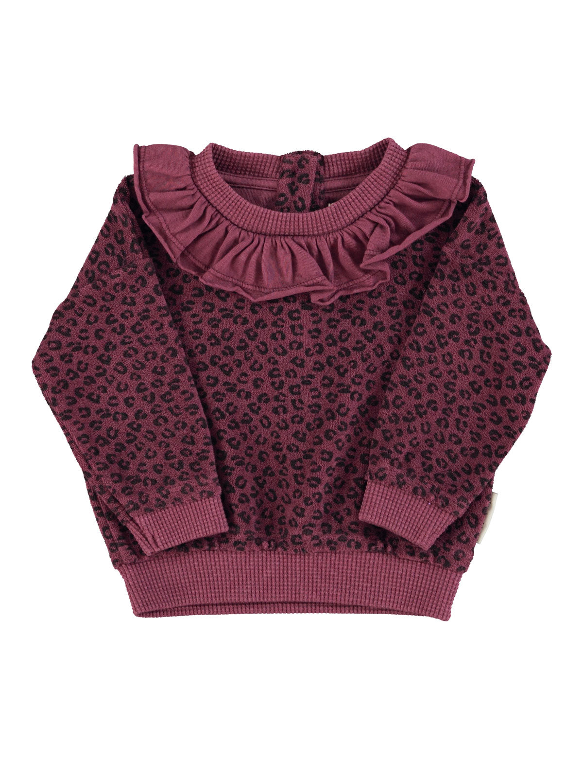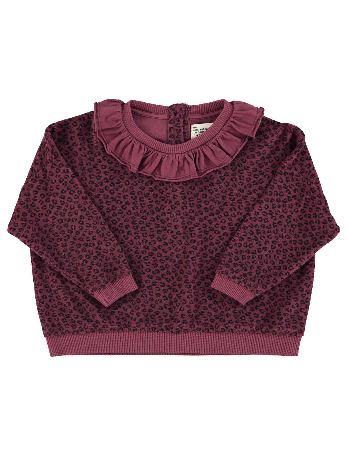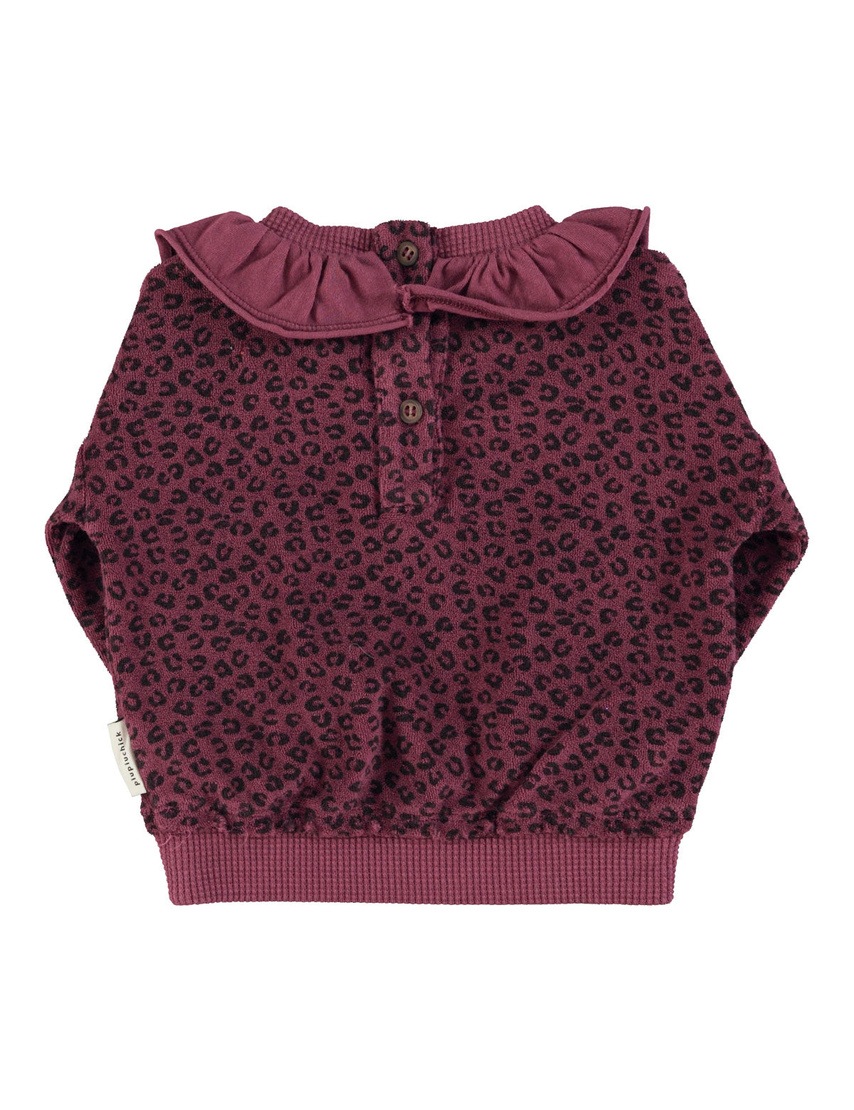 Baby Terry cotton sweatshirt - Aubergine with animal print