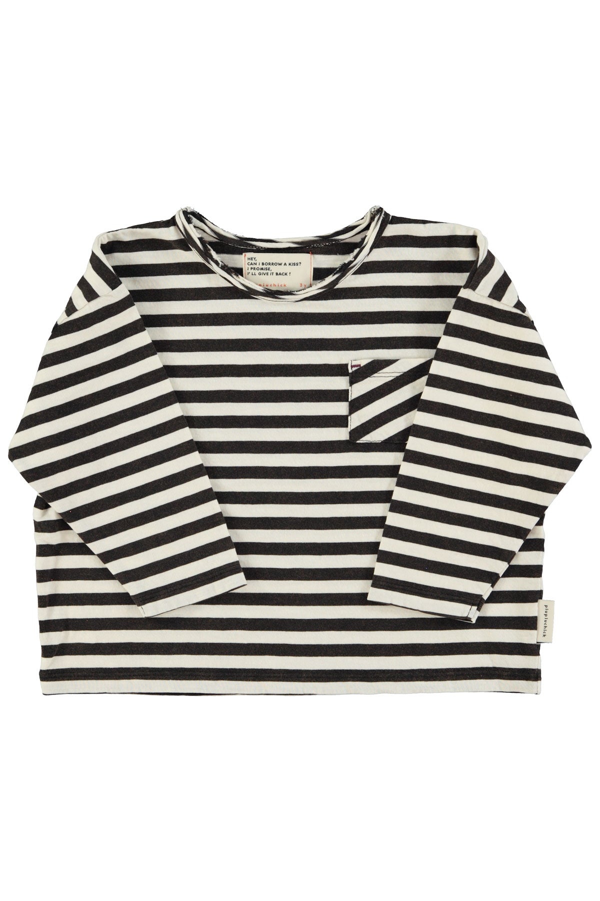 Dit longsleeve T-shirt van Piupiuchick is een heerlijk zachte essential voor de koudere dagen! Met zijn ronde hals en de leuke ecru en zwarte strepen is het een vrolijke toevoeging aan elke outfit. Het shirt heeft een subtiel zakje op de borst en een ruwe afwerking voor een speelse, stoere look. Gemaakt van 100% biologisch katoen, voelt het supercomfortabel aan. Perfect om eindeloos in te spelen en de wereld te ontdekken! Gemaakt in Portugal.