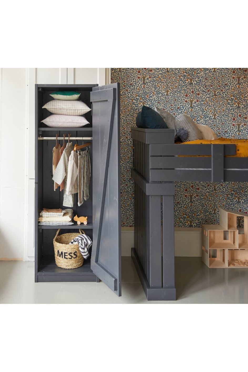 De ruimte onder het bed is ideaal om te bouwen aan geheime hutten, een speelhoek te creëren of zelfs een bureau te plaatsen voor alle knutselprojecten. Saartje Prum staat bekend om haar vrolijke en kwalitatieve kindermeubels, en deze hoogslaper is daar geen uitzondering op. Gemaakt met liefde en oog voor detail, zodat jouw kind veilig en met veel plezier kan slapen en spelen. Het antraciet geeft een stoere touch aan de kinderkamer. Een droombed dat meegroeit met je kind en de fantasie prikkelt!