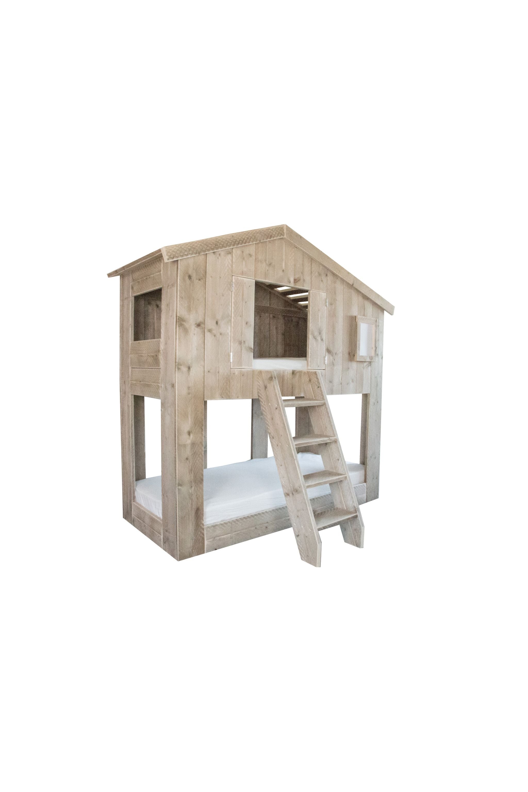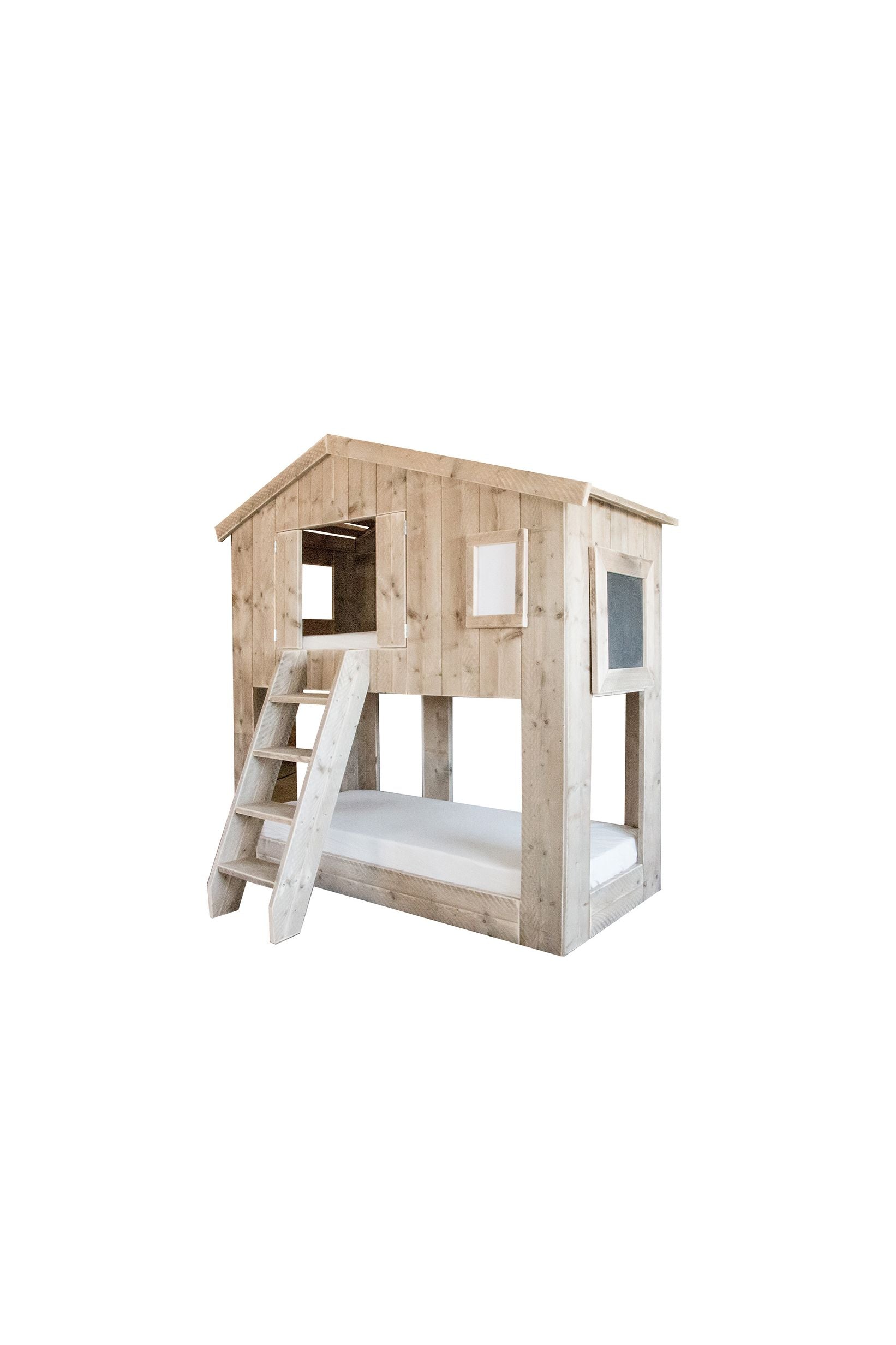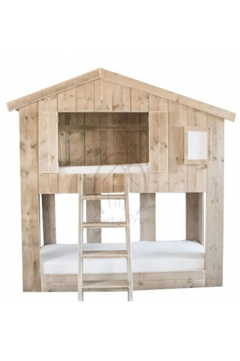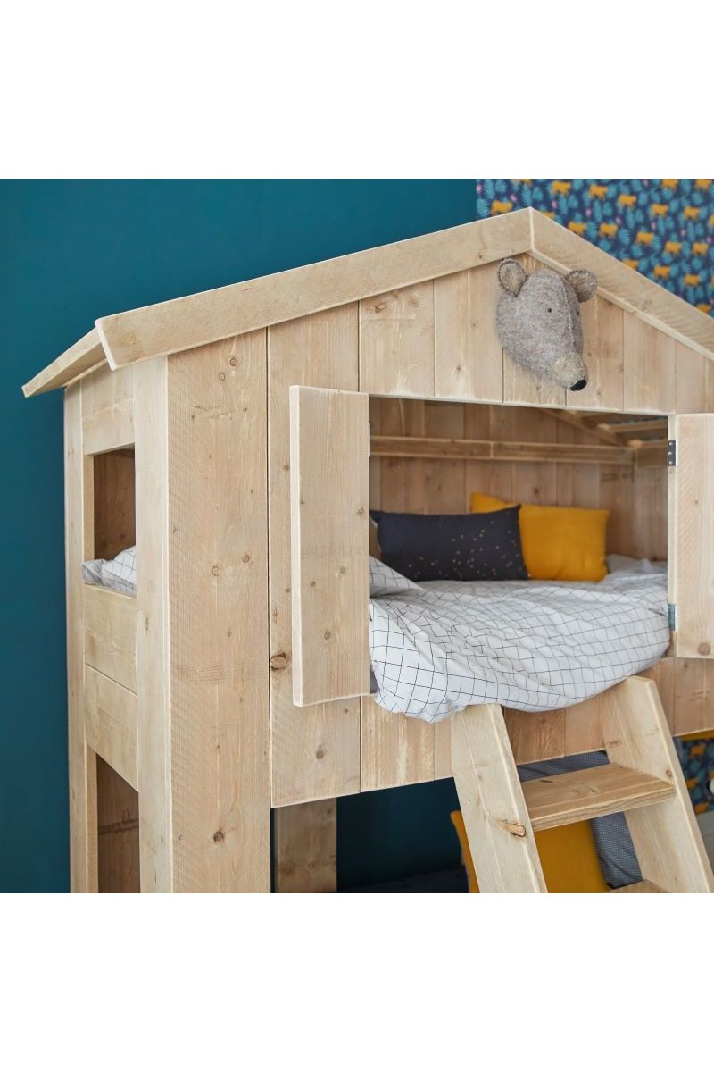 Zoete inval! Het Kinderbed Buurthuis van Saartje Prum is de droom van elk kind. Dit huisjesbed is niet zomaar een bed, het is een avontuur! Met twee heerlijke slaapplekken, één op de begane grond en één op de eerste verdieping, is er altijd ruimte voor logeerpartijtjes of voor broer of zus. Via het trapje klim je zo naar het bovenste bed, klaar voor de leukste dromen hoog in de lucht.