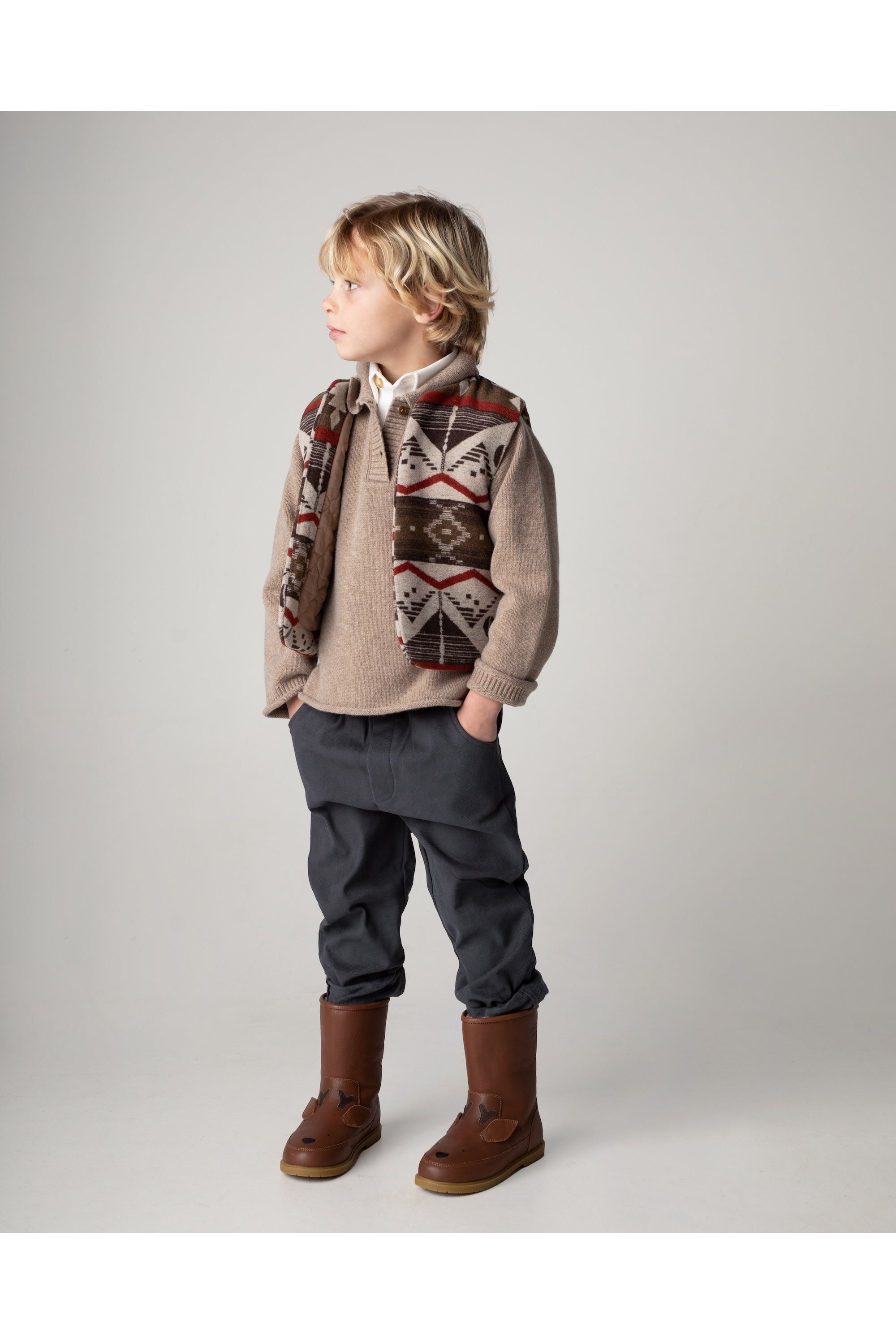 Klaar voor avontuur, slimme dreumes! Met de Olb Trousers in Cloudy Grey van Donsje Amsterdam blijft je kleintje comfortabel én stijlvol. Deze schattige broek heeft een fijne elastische tailleband en handige voorzakken. Donsje staat bekend om haar prachtige details en fijne materialen, perfect voor een tijdloze look. De Olb broek is een must-have voor elke wintergarderobe. Bovendien steun je met je aankoop de Shining Star school in Kenia. Zo wordt aankleden een feestje, voor jou en voor Donsje!