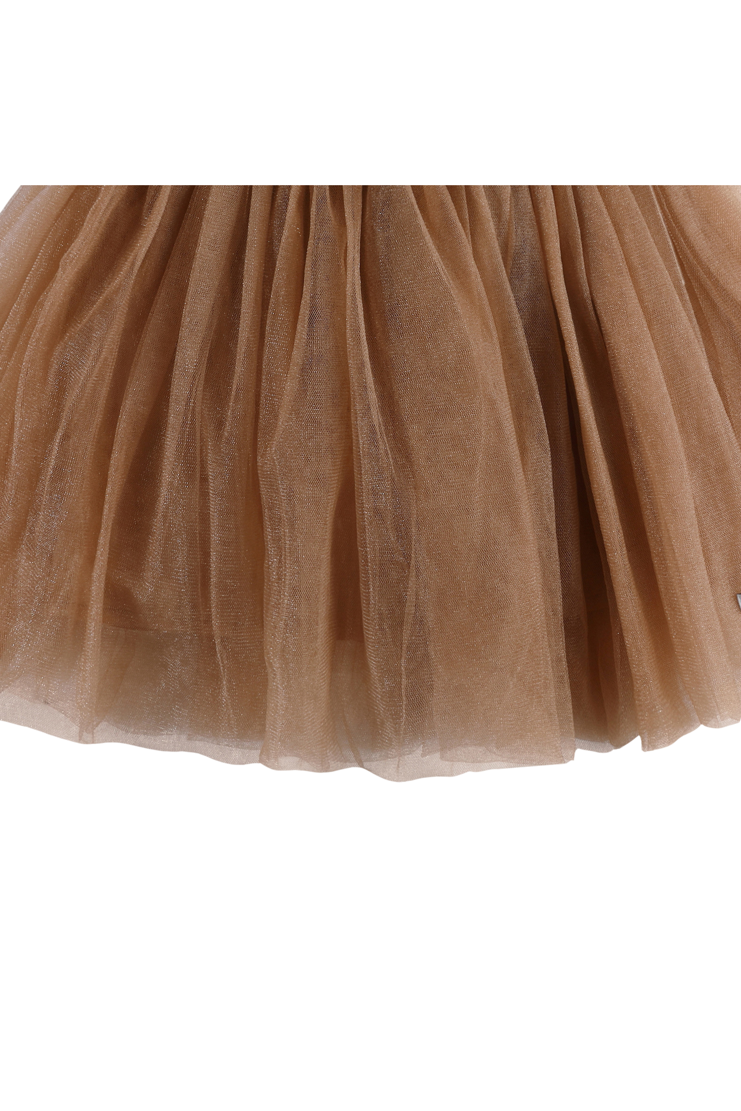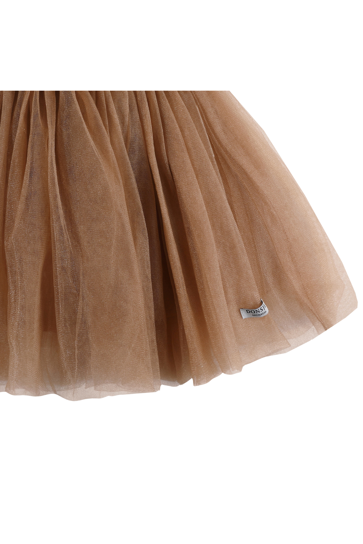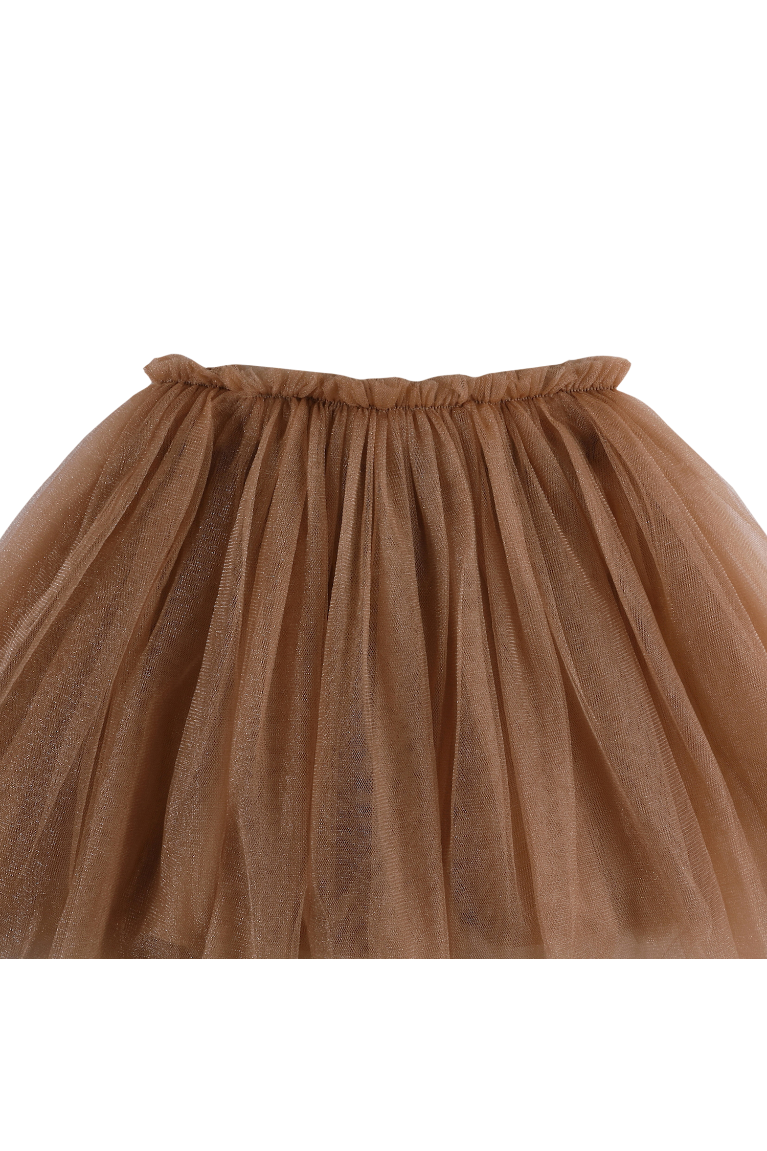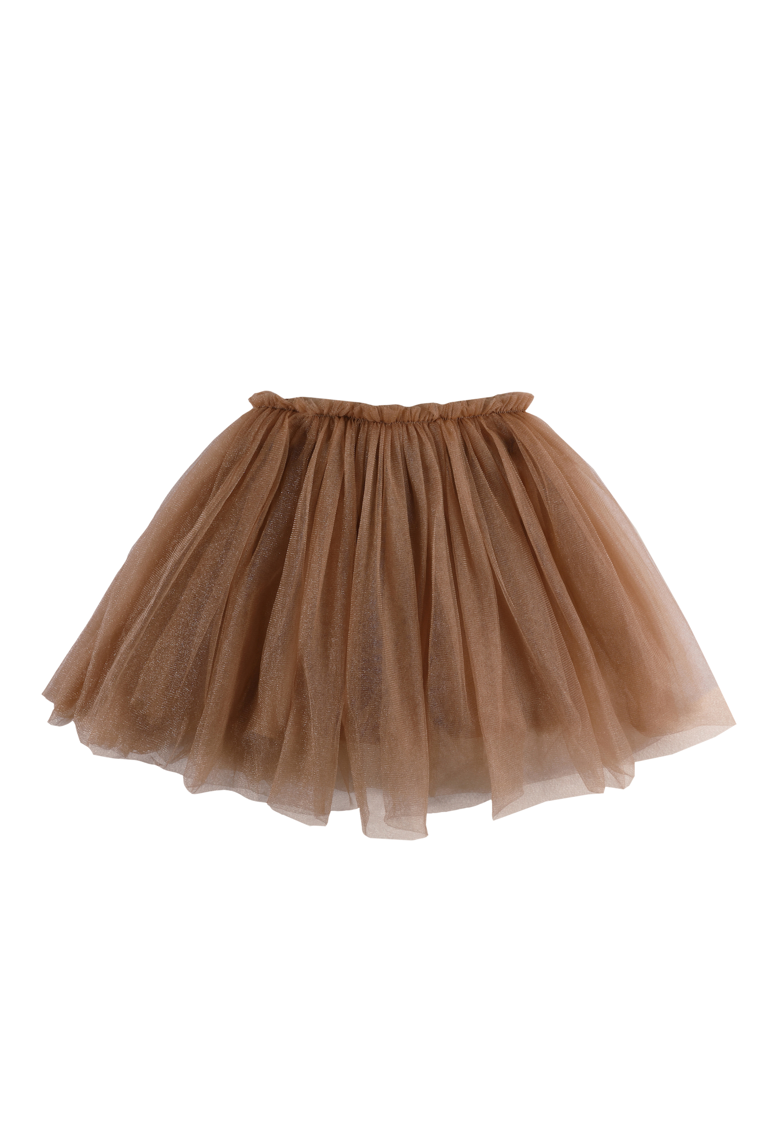 Laat je kleine prinses stralen in de Donsje Pien Rok Warm Sand Metallic! Dit schattige rokje is perfect om gracieus rond te draaien, als een sneeuwvlokje of een elfje. Met comfortabele lagen tule en een zachte metallic glans voor extra sprankeling, is dit rokje gemaakt om in te dansen. Bovendien steun je met Donsje het goede doel van de Shining Star school in Nairobi. Plezier en een beter leven, wat wil je nog meer?