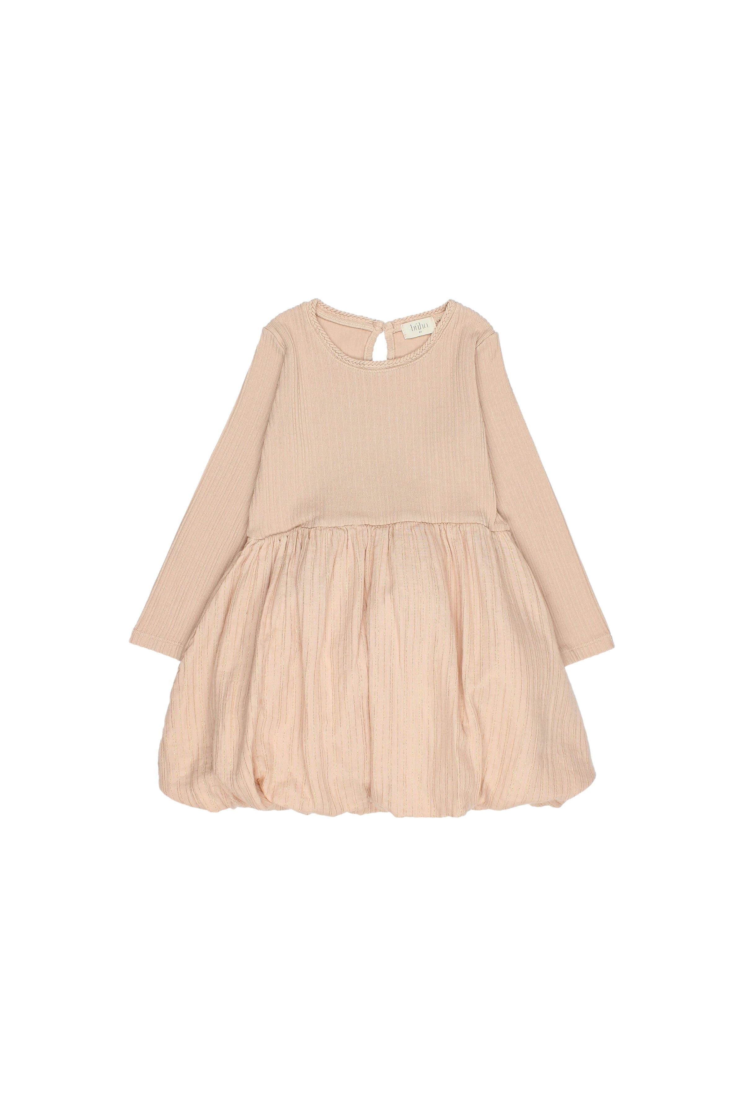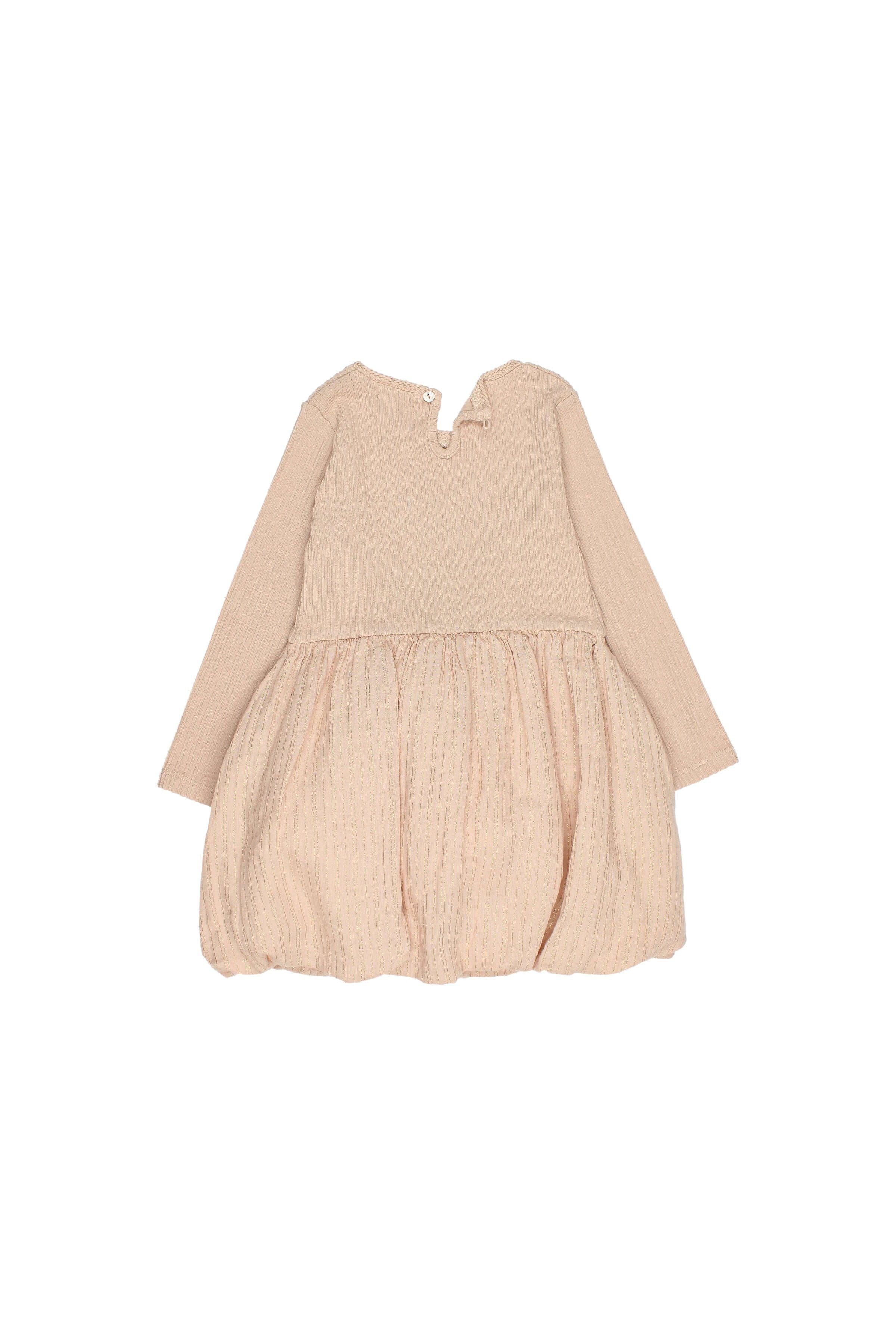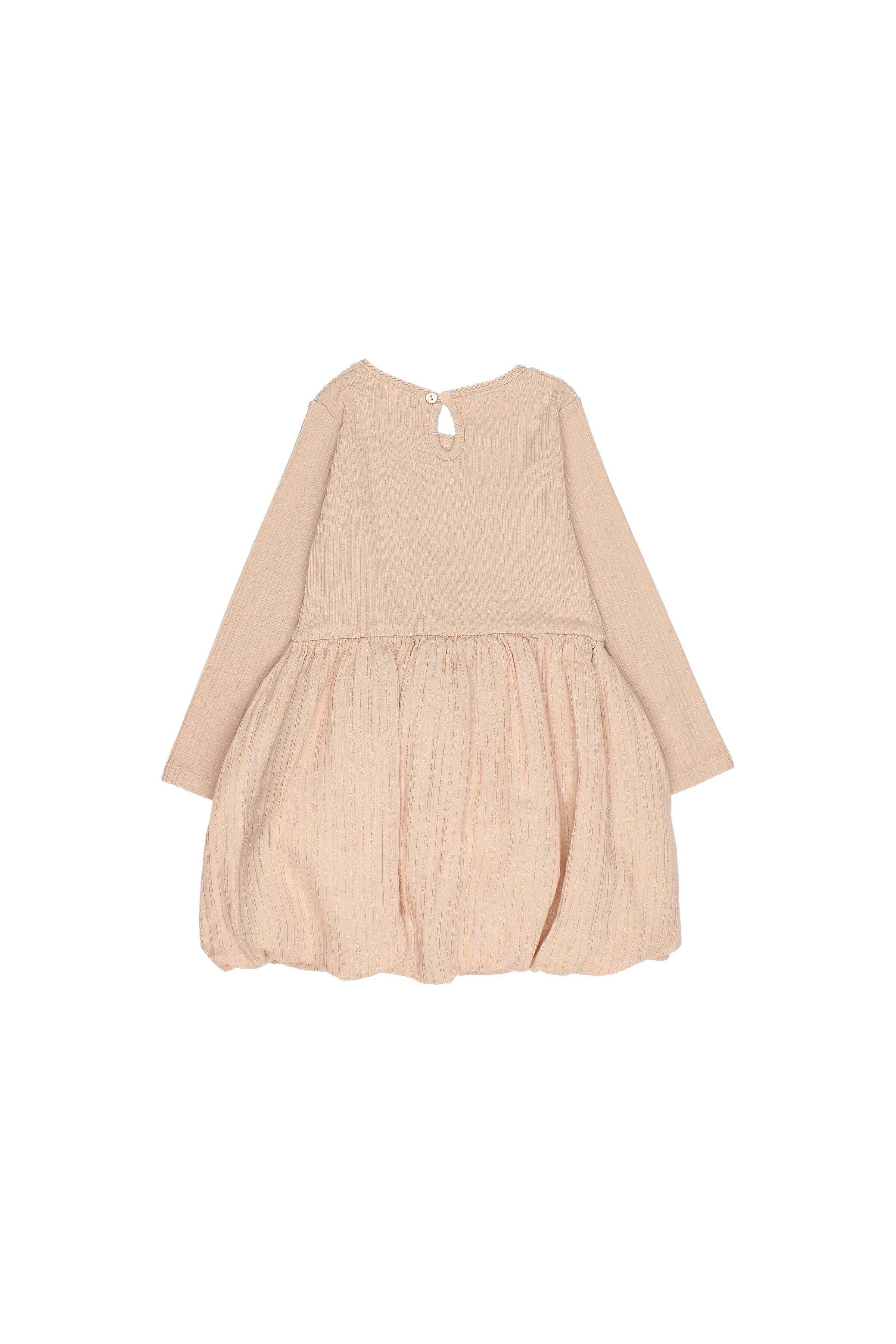 Toverachtige jurk van Búho! De Lurex Combi Dress in Rose is perfect voor elk feestje. Het lijfje is zacht geribd met lange mouwen en een gevlochten ronde halslijn. De rok van dubbel gaas met een subtiele lurex streep zorgt voor een vrolijke, zwierige look. Gemaakt in Spanje met liefde voor duurzaamheid en natuurlijke stoffen. Laat je kleintje stralen in dit unieke en comfortabele jurkje!