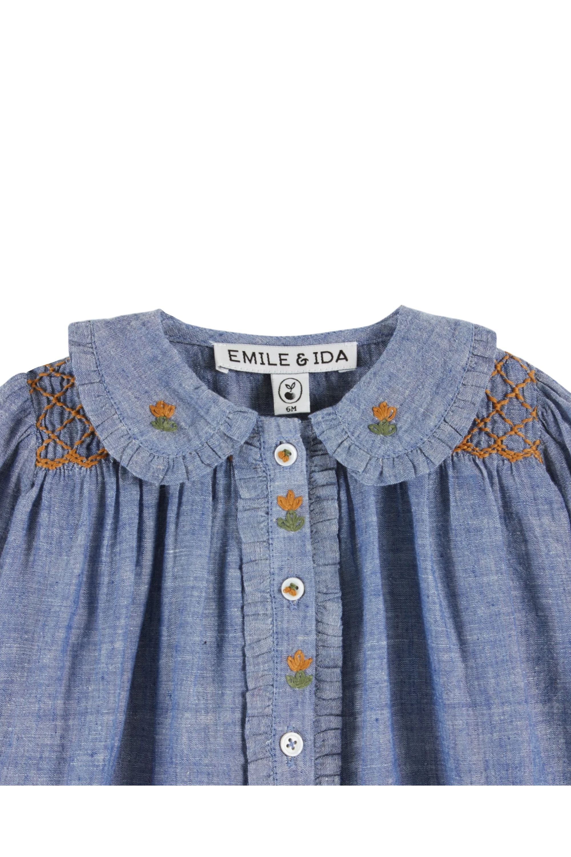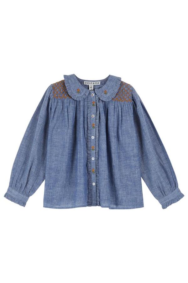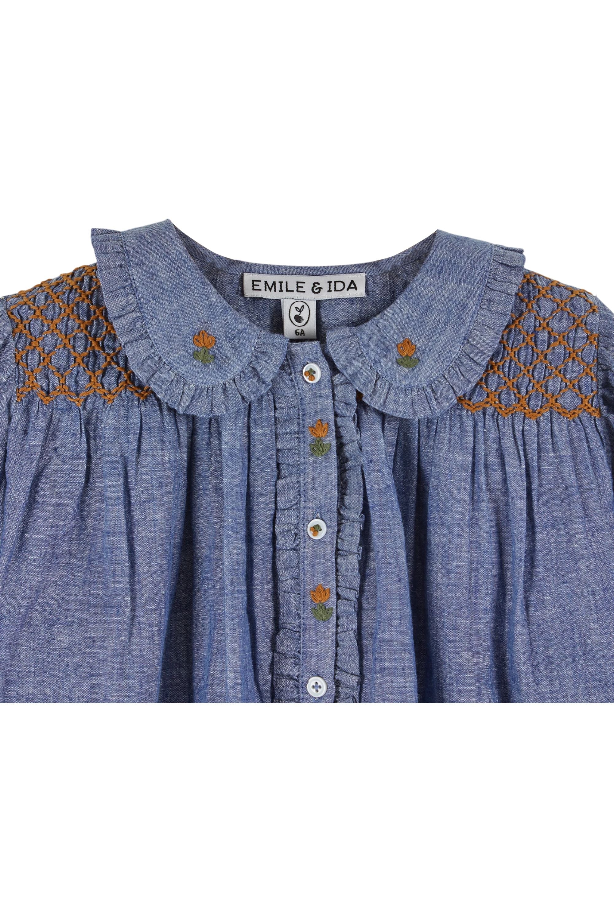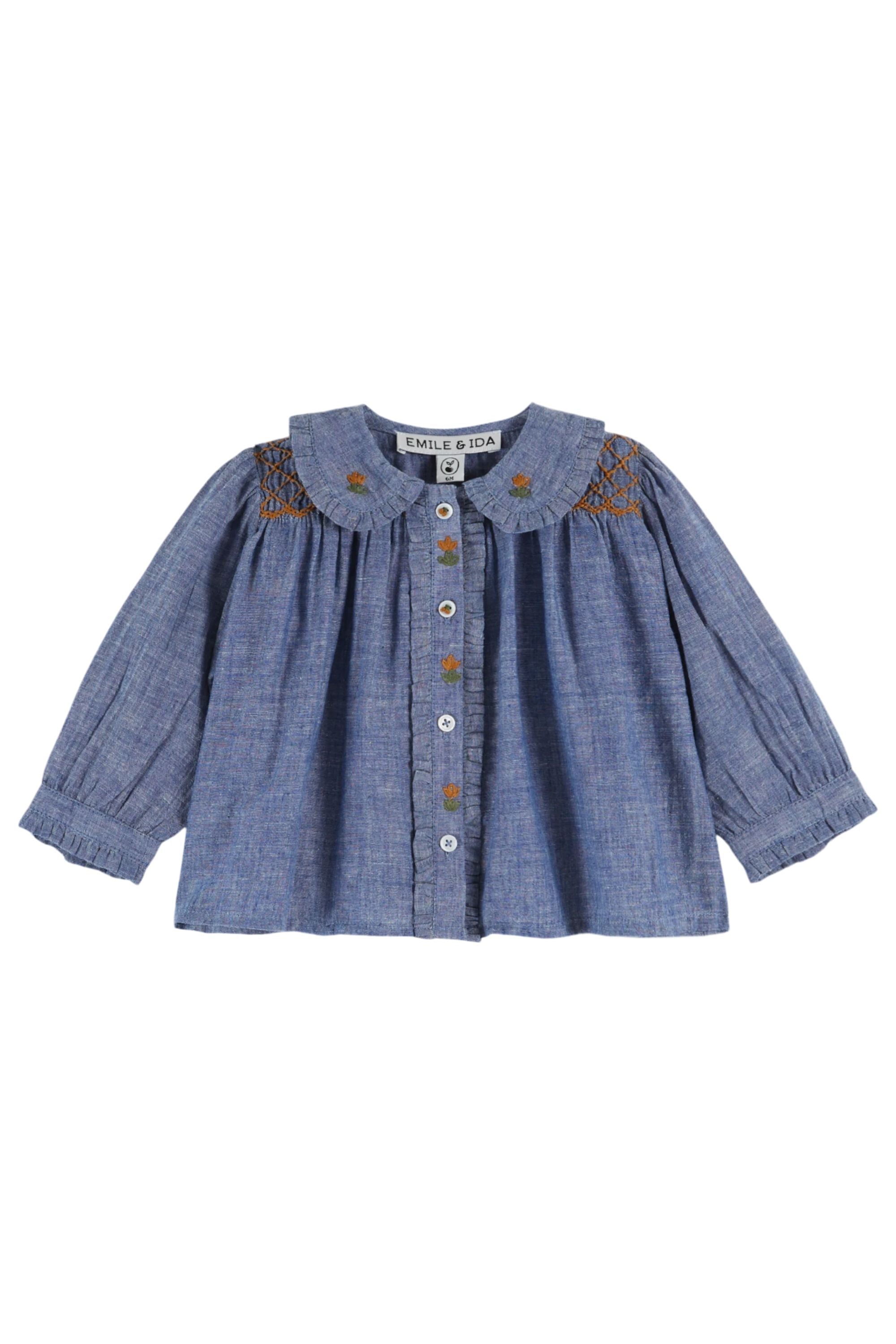 Lieve kleintjes opgelet! Deze prachtige Smocked Blouse Chambray is perfect voor speelse dagen. Gemaakt van 100% zacht katoen, is deze blouse heerlijk comfortabel voor je kleine meisje. Met zijn charmante retro en klassieke stijl, brengt deze blouse het onbezorgde gevoel van Emile et Ida's happy days. Een schattige en stijlvolle toevoeging aan de garderobe voor zowel lente/zomer als herfst/winter.