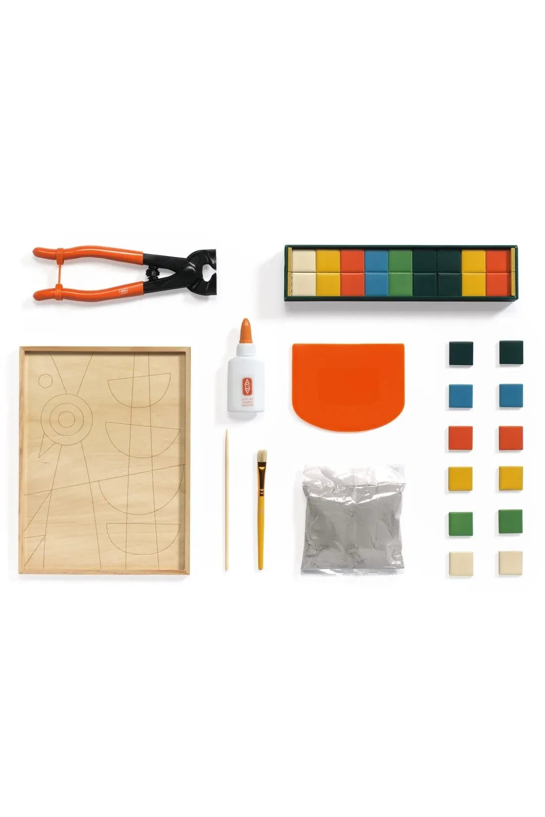 Word een mozaïekmeester met Djeco's Atelier73 - Mosaic! Met deze set (GA10073) creëer je stap voor stap je eigen unieke kunstwerk. De doos bevat alles wat je nodig hebt: een bedrukt houten paneel, keramische tegels, een mozaïektang, cement, lijm en meer. Laat je creativiteit de vrije loop en maak iets prachtigs. Geschikt voor leeftijden 15 tot 99 jaar. Perfect om lekker ontspannen thuis mee aan de slag te gaan!