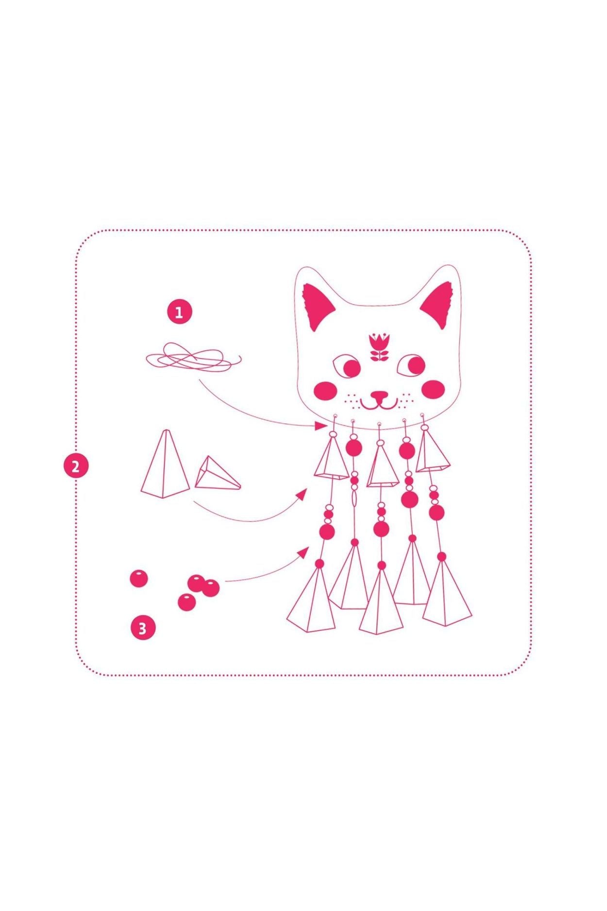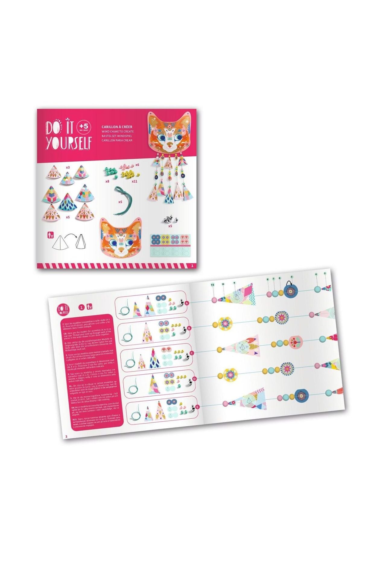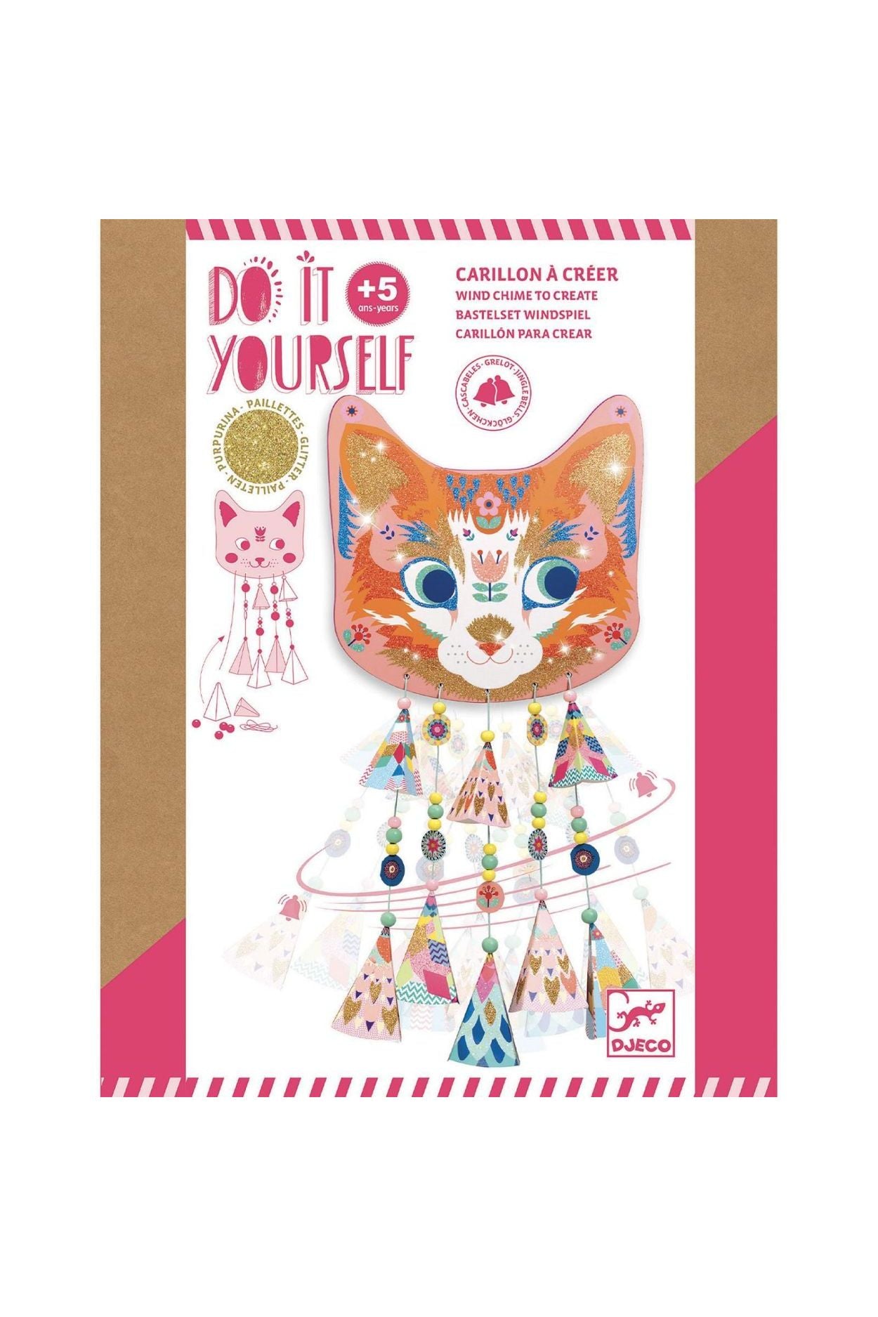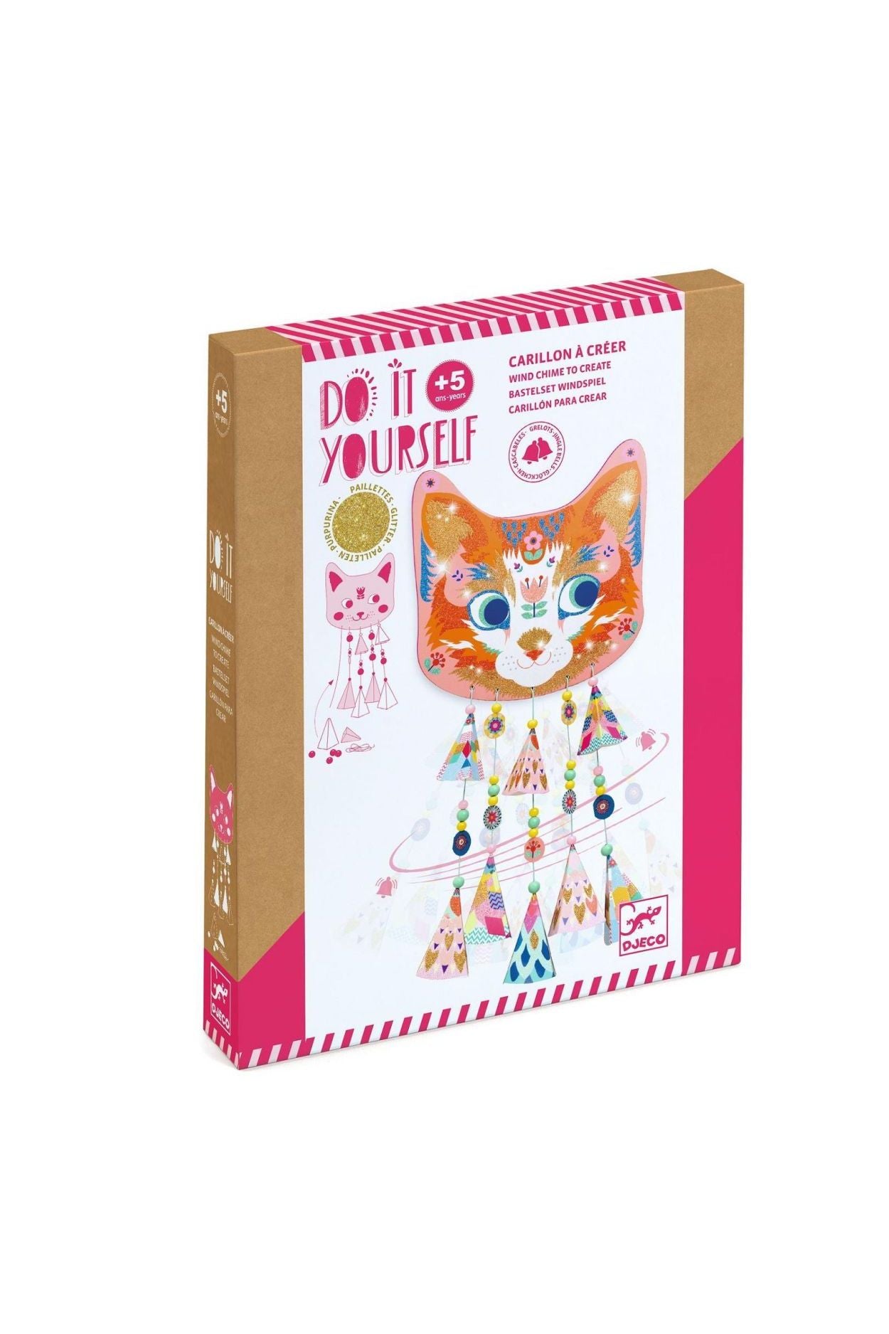 Maak je eigen betoverende kattenmobiel met deze leuke DIY knutselset van Djeco! Rijg de gewaxte katoenen draden met bellen, houten kralen en geïllustreerde kegels aan de schattige poezenkop. Als de wind erdoorheen waait, rinkelt en glinstert je mobiel lieflijk. Dit is een creatief project voor kindjes vanaf 5 jaar. Uren speelplezier gegarandeerd!
