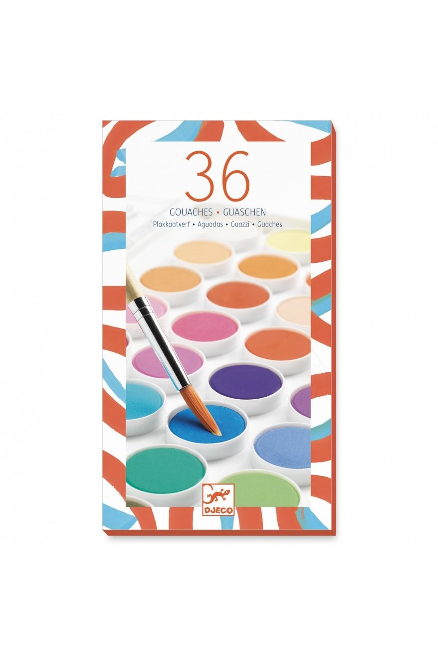 Laat je creativiteit stralen met de Waterverf Gouaches set van Djeco! Dit fantastische palet bevat maar liefst 36 volle kleuren om de mooiste kunstwerken te maken. Gouache staat bekend om zijn uitstekende dekking, ideaal voor kleine kunstenaars vanaf 4 jaar. De set wordt compleet geleverd met een penseel en een handig mengplaatje. Met Djeco's kwalitatieve verf is urenlang kleurplezier gegarandeerd. Perfect voor school of thuis!