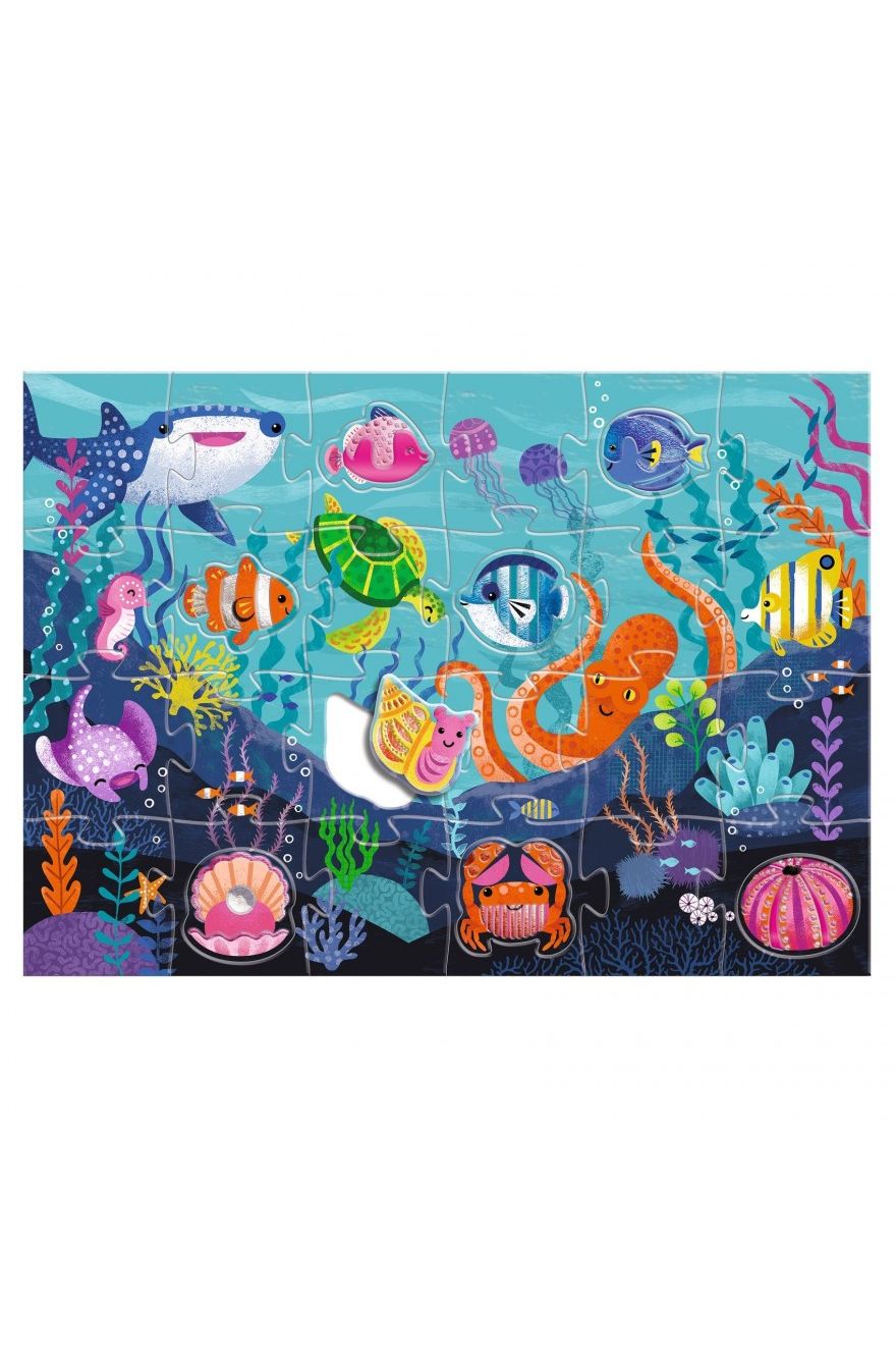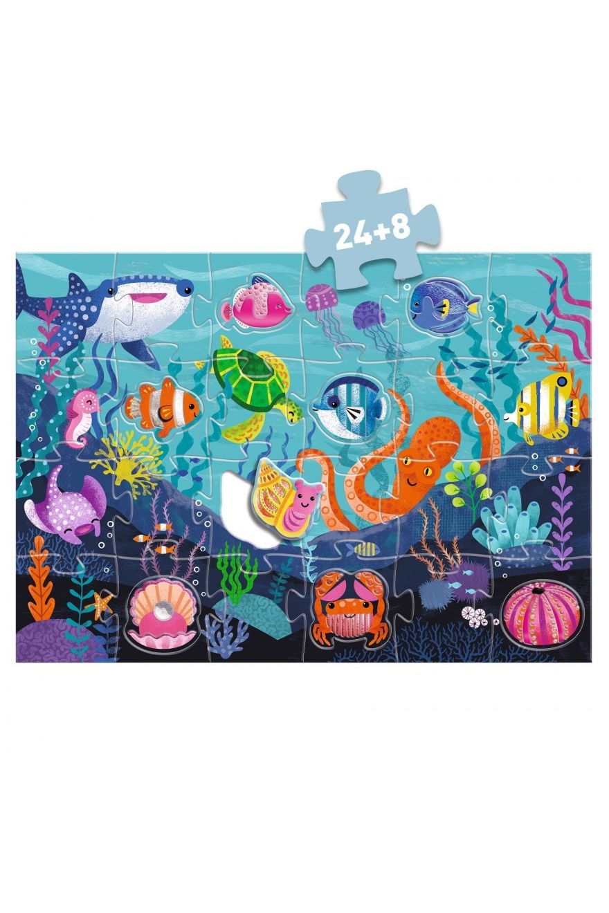 Ontdek de betoverende Djeco Puzzel XL Zeedieren! Deze gigantische vloerpuzzel (vaak met 24 of 32 extra grote stukken) is perfect voor kleine handjes vanaf 3 jaar. Puzzel de vrolijke zeebewoners in elkaar: een vis, zee-egel, krab en zelfs een schelp met een parel! Gemaakt van dik, FSC-gecertificeerd karton. Superleuk voor uren speelplezier en een milieuvriendelijke keuze. Stap in de magische onderwaterwereld van Djeco!