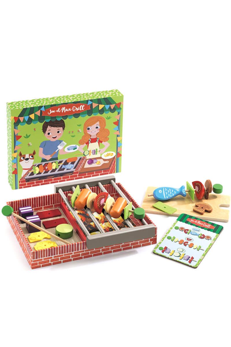 Het is tijd voor een gezellige barbecue met de Joe & Max Grill van Djeco! Dit leuke rollenspel laat je kind de chef uithangen. De houten doos verandert in een kleurrijke grill. Maak heerlijke spiesjes met de 20 houten en vilten ingrediënten. Kies vlees, vis of groenten en grillen maar! Dit speelgoed is perfect voor kleine chef-koks vanaf 4 jaar en stimuleert creatief spel. Alles berg je eenvoudig op in de stevige houten kist.