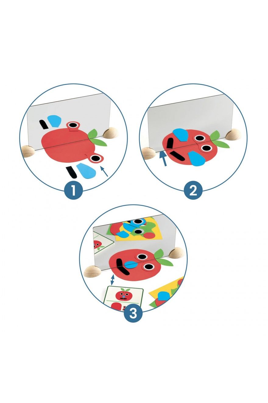 Ontdek het magische Spiegelspel Ze Mirror Faces van Djeco! Dit vrolijke spel daagt kinderen (vanaf 5 jaar) uit om te spelen met reflectie. Gebruik de spiegel en de 25 papieren vormen om de gekke gezichten op de 20 voorbeeldkaarten na te maken. Schuif de vormen onder de spiegel en zie hoe alles verandert. Een lange stok wordt plotseling een klein stipje! Een superleuke manier om te experimenteren en eigen, grappige gezichten tot leven te brengen.