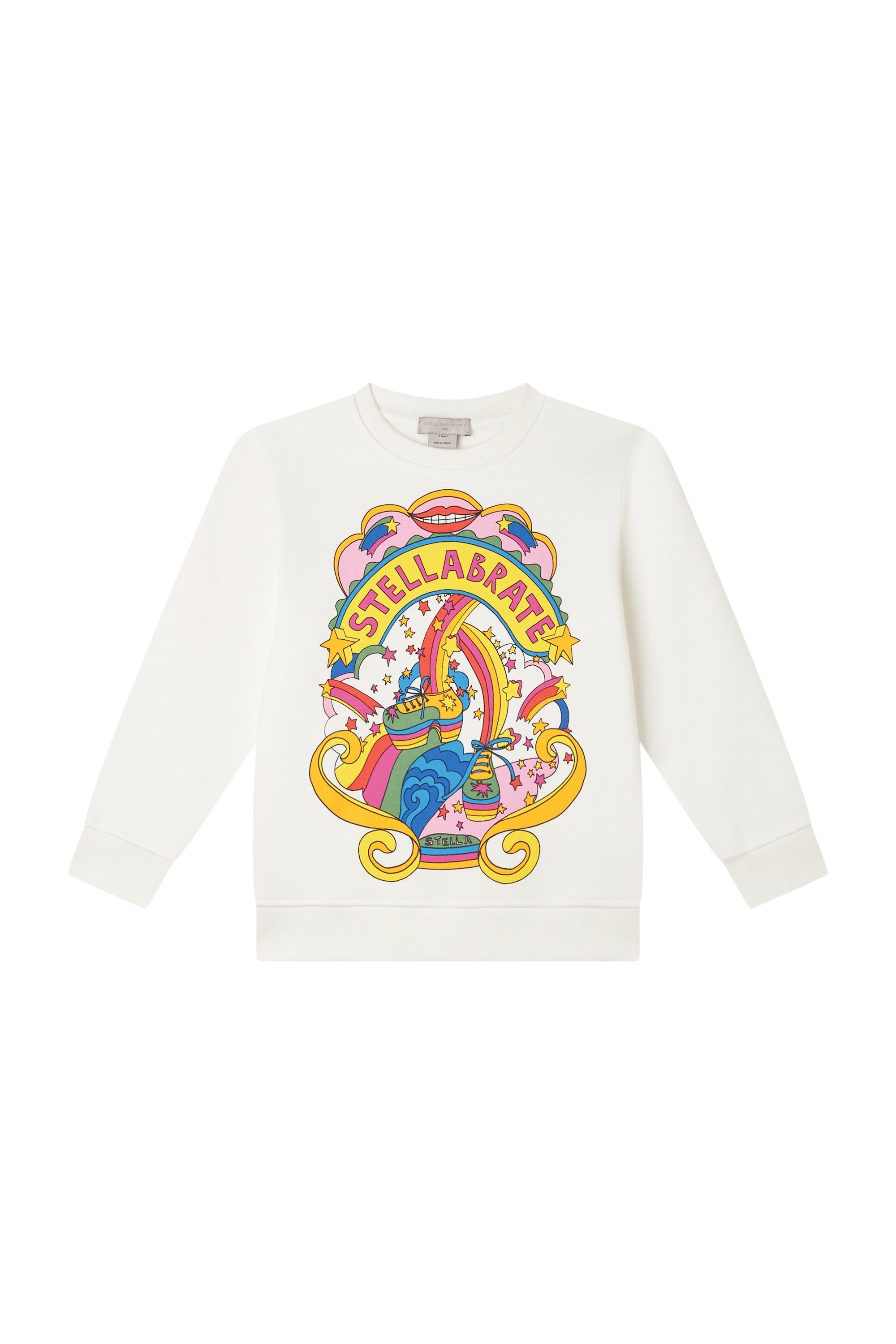 Deze superzachte Cotton Fleece Sweatshirt van Stella McCartney is perfect om te vieren hoe cool je bent! Met de vrolijke 'Stellabrate' print is dit de ideale trui voor speelse meiden. Gemaakt van 100% katoen, net zoals Stella McCartney graag duurzaam en diervriendelijk werkt. Trek hem aan en verspreid positiviteit, want *being kind is cool*! Hij zit heerlijk comfortabel voor al je avonturen.