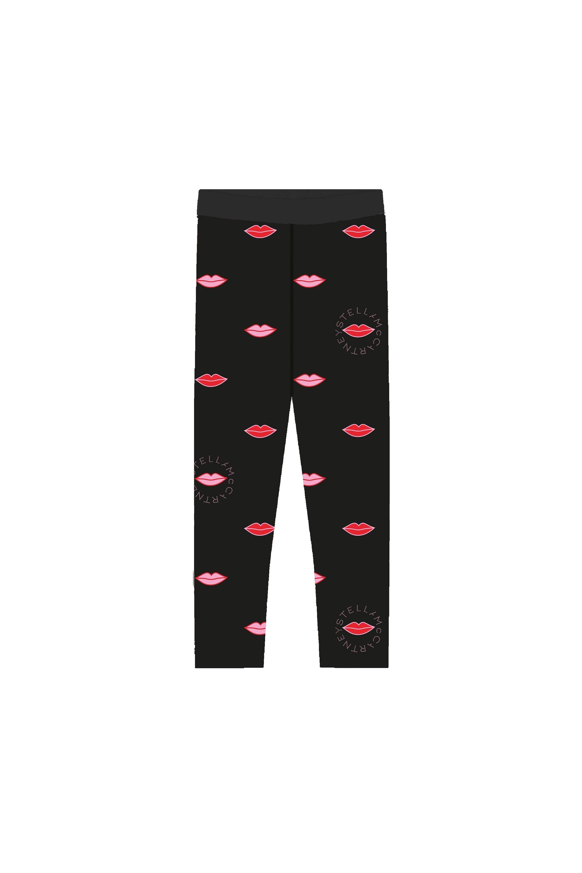 Kleine fashionista's opgelet! Deze Stella McCartney Kids leggings zijn zijdezacht en supercomfortabel, perfect voor avontuurlijke dagen. Ze hebben een vrolijke print van rode en roze lippen, gecombineerd met de speelse ronde logo's van het merk. De brede, elastische tailleband zorgt voor een fijne pasvorm. Stella McCartney staat bekend om haar duurzame en diervriendelijke ontwerpen. Tijd om te stralen in deze leuke broek!