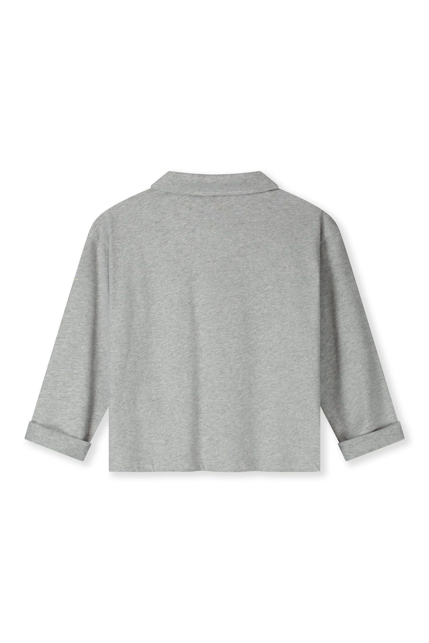 Zeg hallo tegen het Longsleeve Polo Shirt van Gray Label in zacht Grey Melange! Dit fijne shirt is gemaakt van 100% biologisch katoenen jersey en voelt heerlijk aan op de huid. Perfect voor speelse dagen en knusse momenten. De klassieke polokraag maakt het netjes genoeg voor elke gelegenheid. Een superzachte essential die niet mag ontbreken in de kledingkast van jouw kleintje.