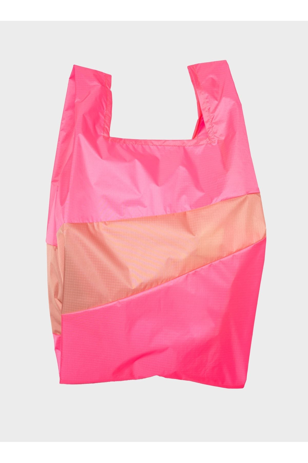 De New Shopping Bag Fluo Pink & Try Large van SUSAN BIJL is een ruime, stijlvolle en duurzame tas. Gemaakt van waterdicht, fluorkoolstofvrij ripstop nylon met 100% gerecycled garen, is deze tas perfect voor al je dagelijkse benodigdheden. Met een afmeting van 37.5 x 70 x 20 cm en een capaciteit van 28 liter, is hij ideaal voor boodschappen, dagjes uit of als extra tas. De tas vouwt gemakkelijk op dankzij het lichte en veerkrachtige materiaal, waardoor hij overal mee naartoe te nemen is.