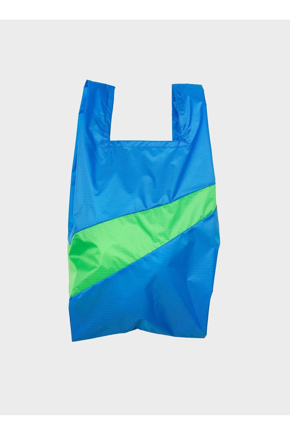De New Shopping Bag Wave & Greenscreen Medium van SUSAN BIJL is de perfecte, veelzijdige tas. Gemaakt van waterdicht, fluorkoolstofvrij ripstop nylon met 100% gerecycled garen, onder Bluesign®-certificering, is hij zowel duurzaam als lichtgewicht. Met een afmeting van 27 x 55 x 14 cm en een inhoud van 10 L is deze tas ideaal voor dagelijks gebruik, of je nu boodschappen doet, naar school gaat of een dagje uit bent. Wasbaar op 30 graden.