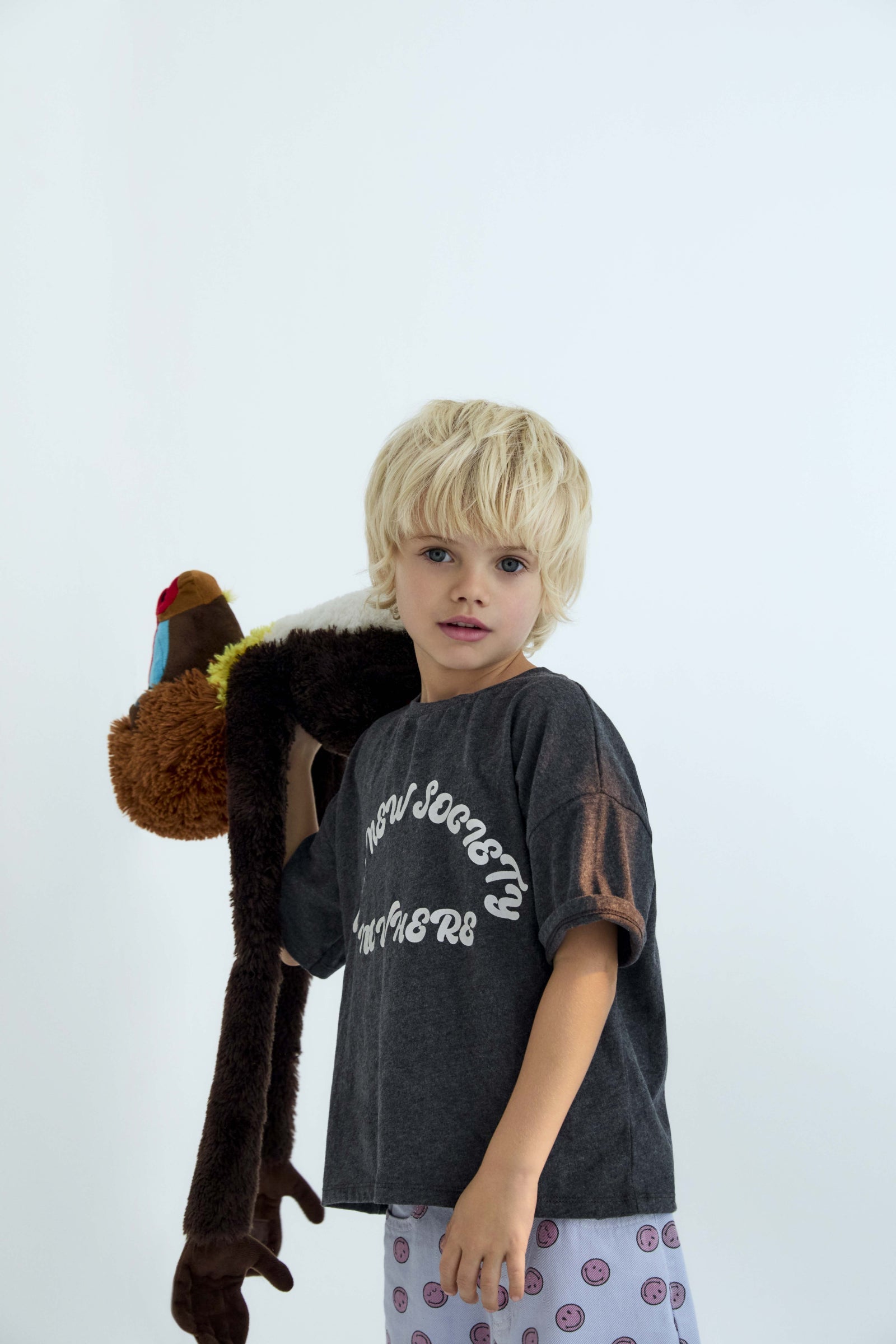 Dit Nico T-shirt in Galactic Grey Melange van The New Society is een heerlijk zacht T-shirt van 100% katoen. Met het opvallende, contrasterende logo draag je niet zomaar een kledingstuk, maar een stukje 'soul' en authenticiteit! Dit comfortabele unisex shirt past perfect bij de creatieve en bewuste kijk van het merk. Gemaakt met liefde en van duurzaam materiaal, voor kindjes die vrijheid vinden in de details. Klaar voor elk avontuur, het hele jaar door!