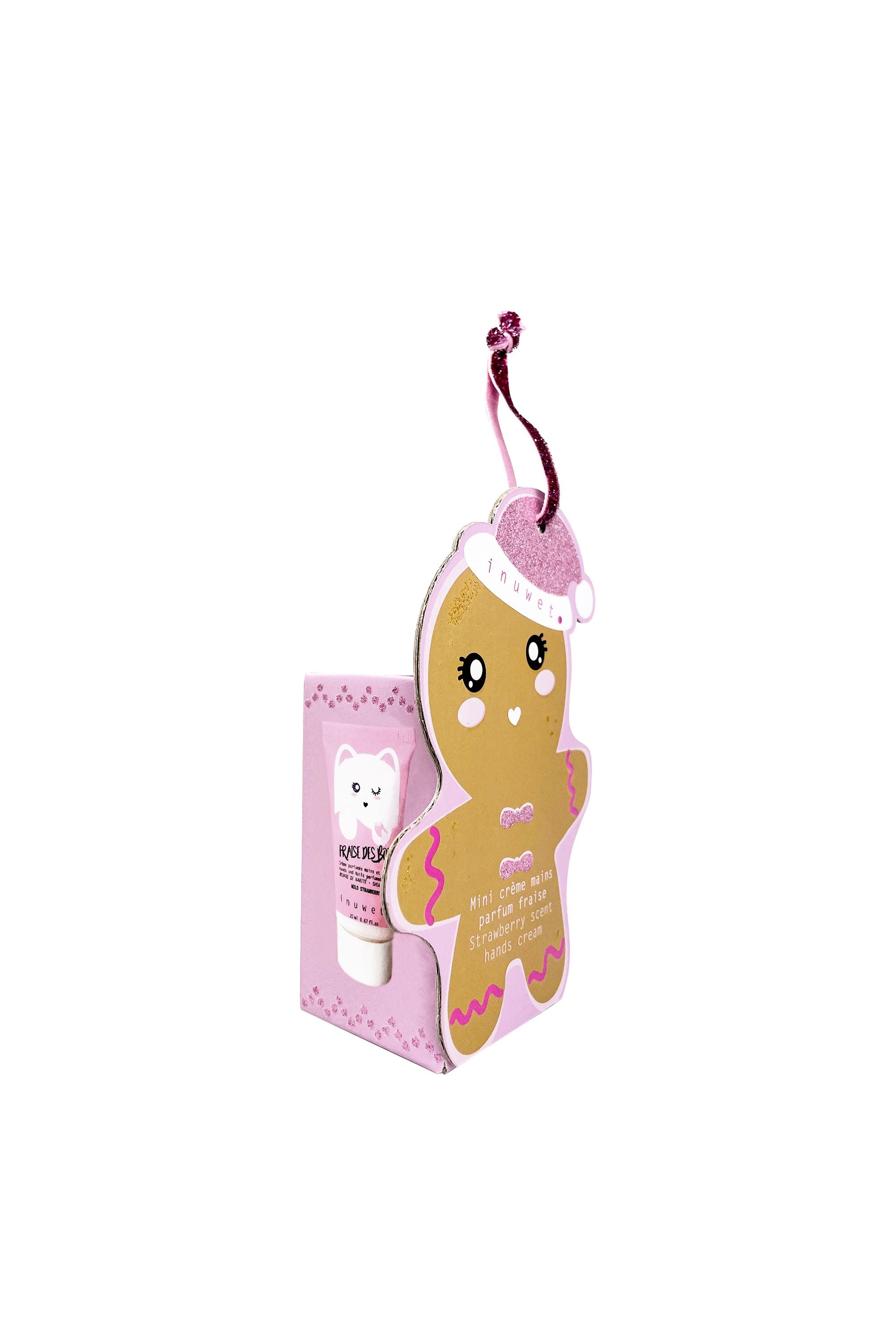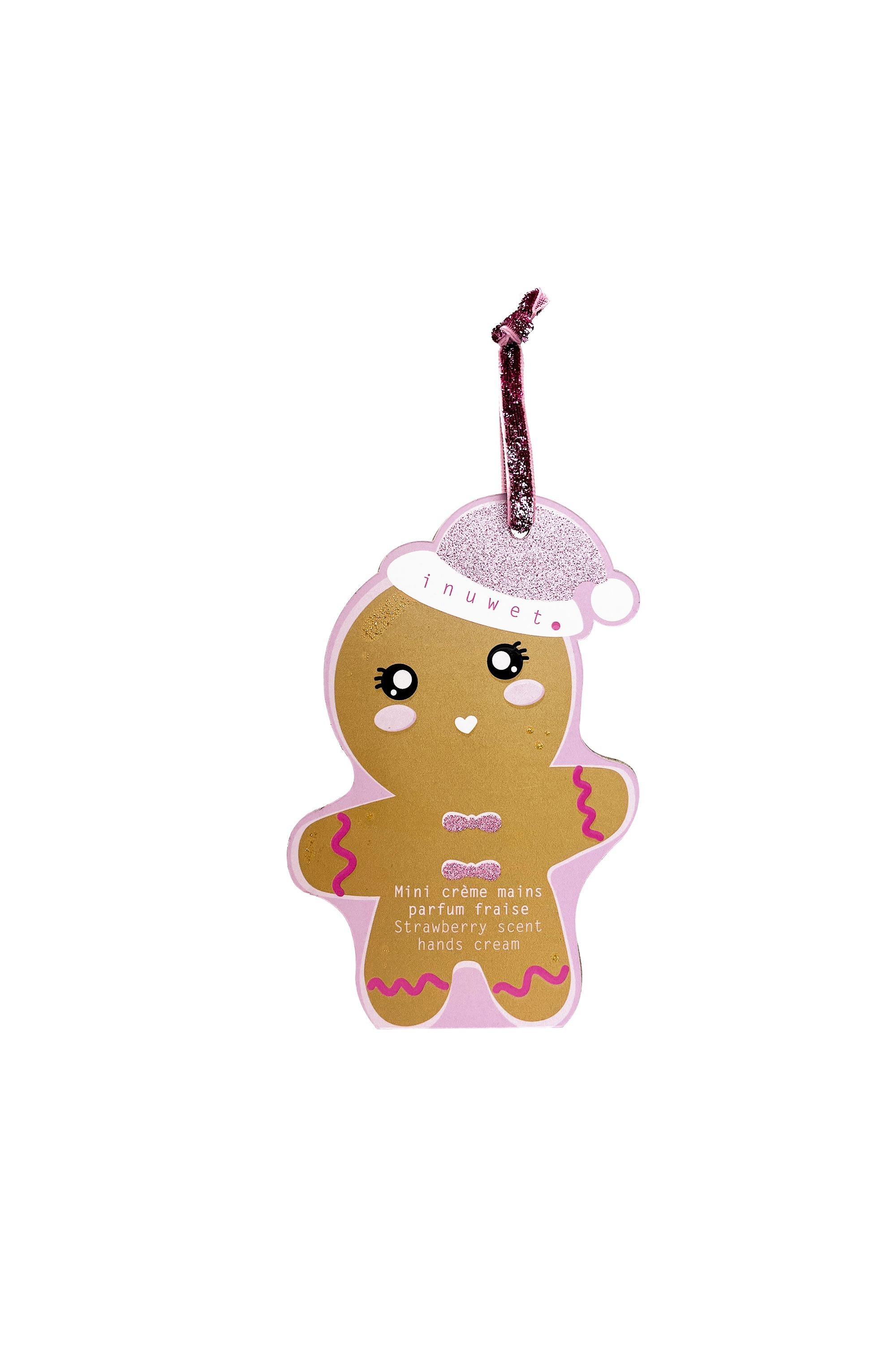 Breng de kerstmagie naar de handjes van je kind met de Inuwet Gingerbread Santa Mini Hand Cream! Dit schattige product is een perfect schoencadeautje. De hydraterende hand- en nagelcrème, verrijkt met sheaboter, beschermt de handjes en heeft een heerlijke fruitige aardbeiengeur. De tube in de vorm van een gingerbread man is superleuk om te geven en te krijgen. Geschikt voor kinderen vanaf 3 jaar.