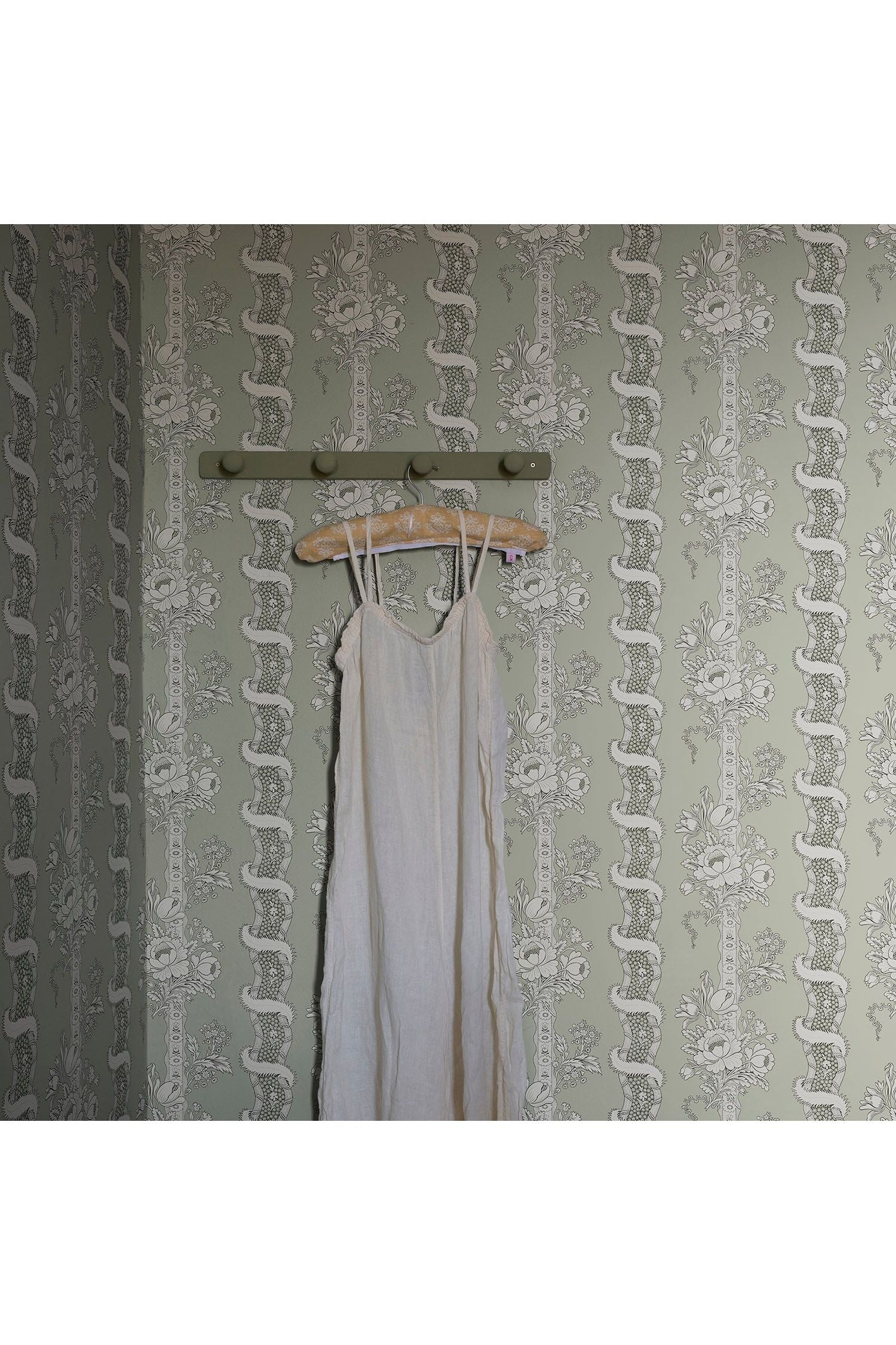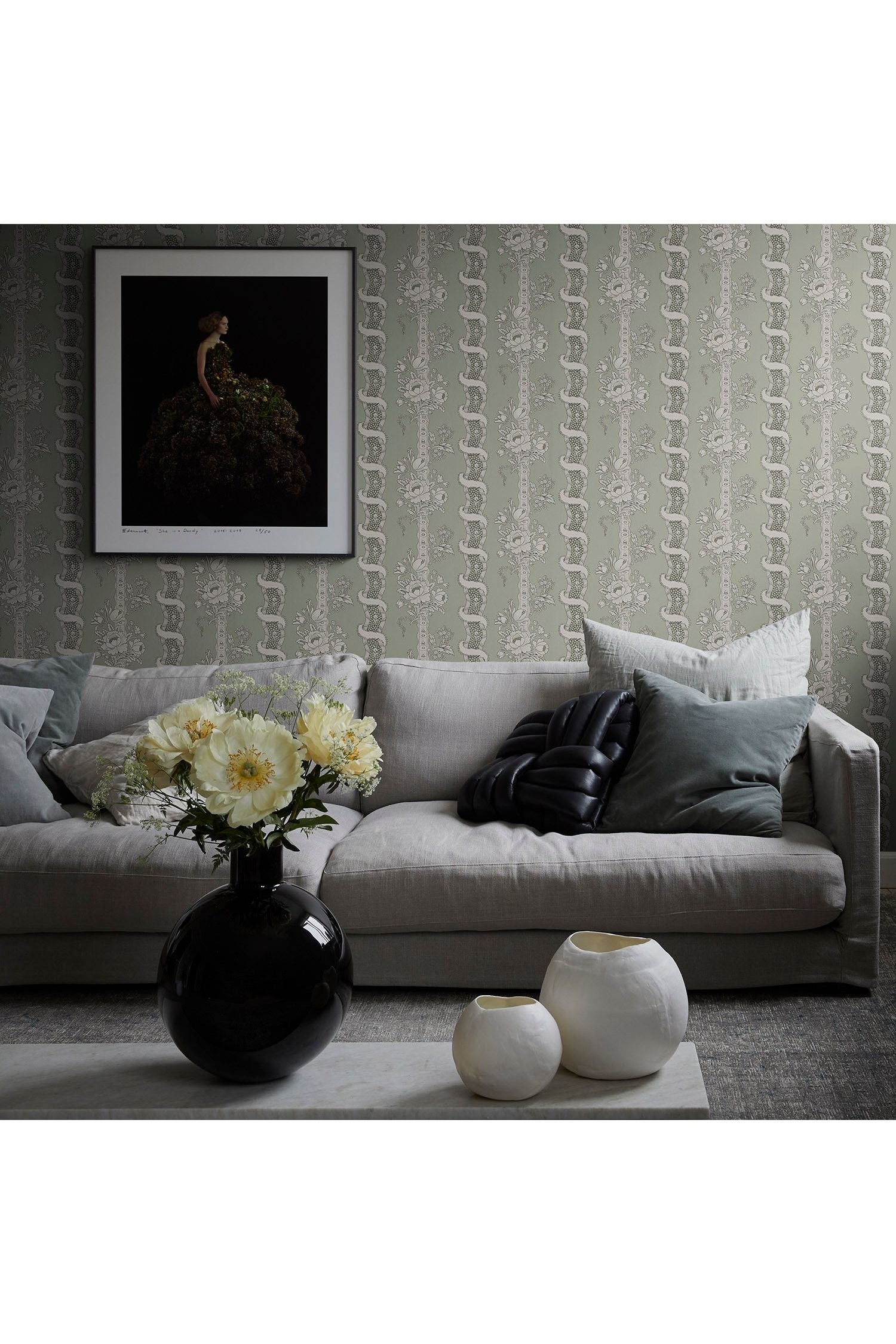 Laat de kamer van je kleintje stralen met het Alexandra behang in Sage Green van Sandberg! Dit charmante behang met bloeiende strepen en wervelende linten is gebaseerd op een handgeschilderde Franse Domino uit de 19e eeuw. Het patroon zorgt voor een gevoel van hoogte en creëert een dromerige, stijlvolle sfeer. Perfect voor de kinderkamer waar fantasie de vrije loop krijgt!