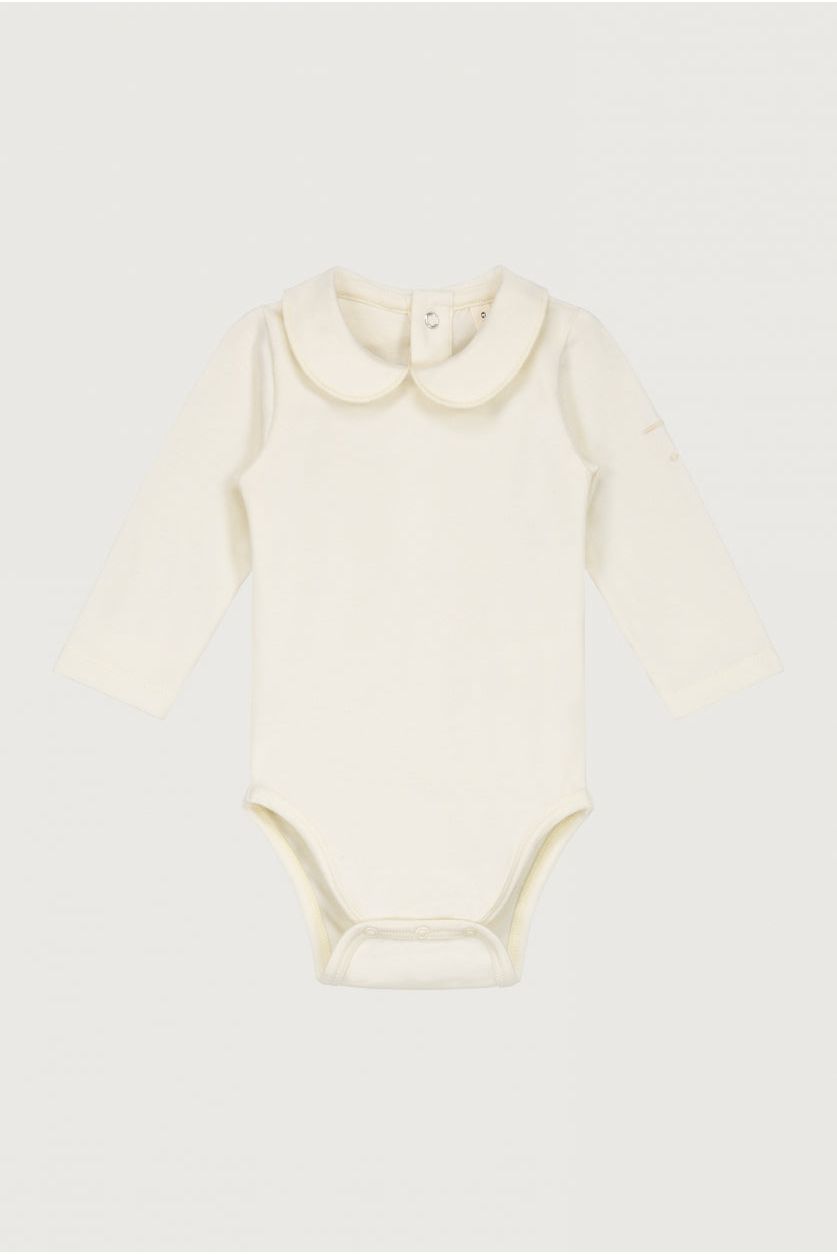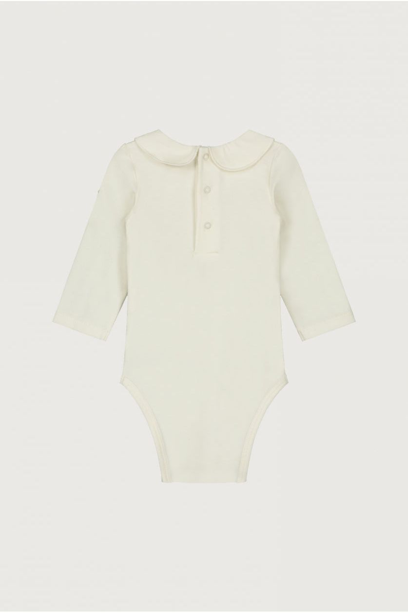 Deze schattige Baby Collar Onesie van Gray Label is de perfecte outfit voor je kleintje. Gemaakt van zacht 95% biologisch katoen, is deze 'Cream' onesie heerlijk comfortabel en zacht voor de gevoelige babyhuid. De New Fit zorgt voor extra bewegingsvrijheid. Met het lieve kraagje ziet je baby er super stijlvol uit, klaar om de wereld te ontdekken! Een must-have voor elke dag.