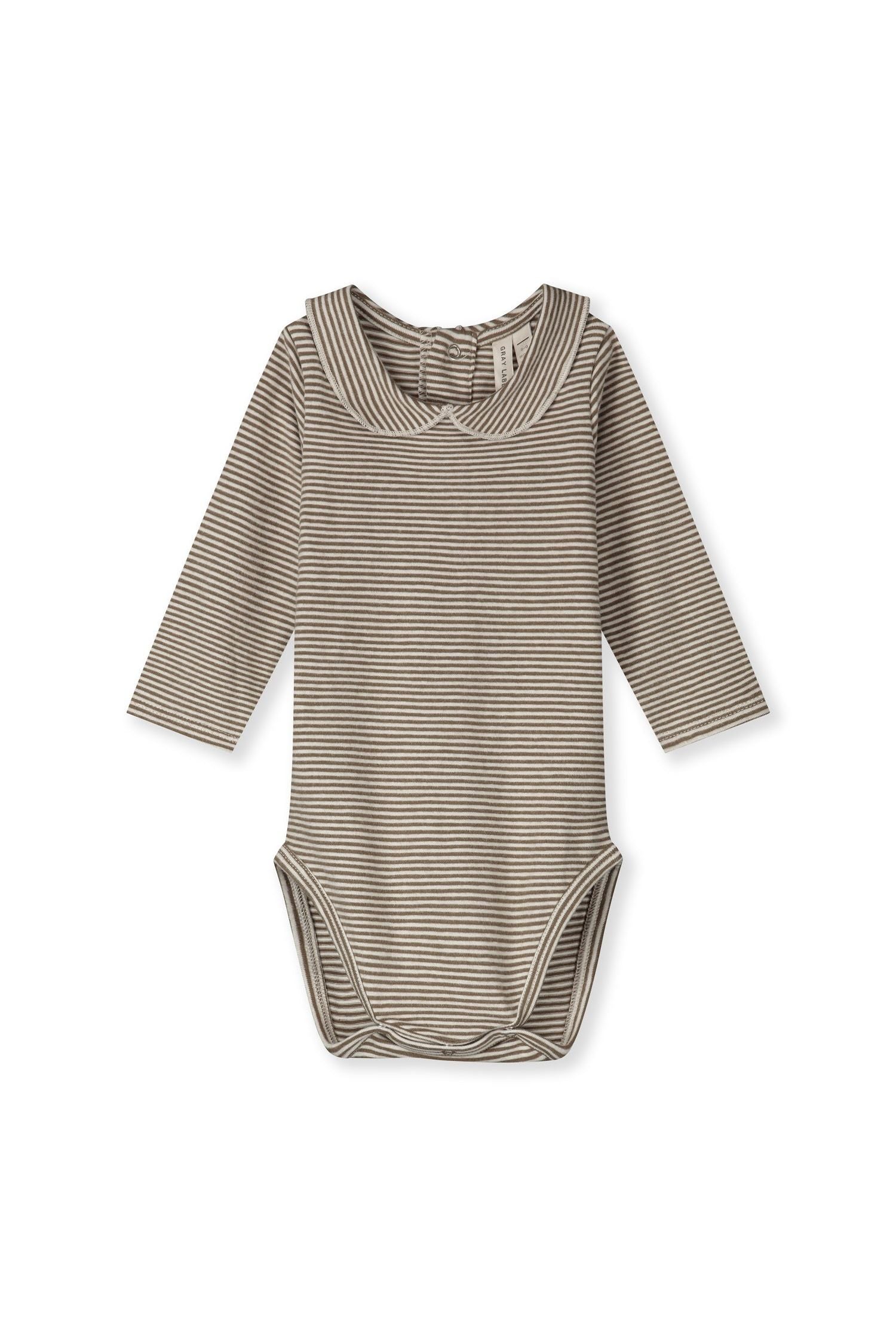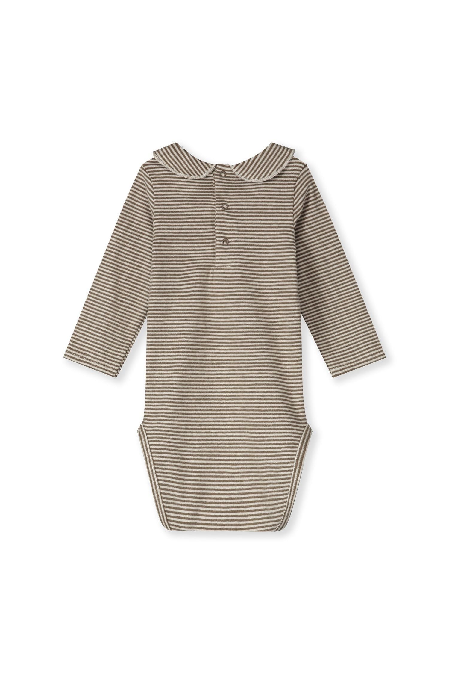 Deze schattige Baby Collar Onesie van Gray Label is perfect voor jouw kleintje! Gemaakt van superzacht GOTS biologisch katoen, voelt hij heerlijk aan op de gevoelige babyhuid. De onesie in de kleur Woody Cream is voorzien van een lief kraagje en drukknopen, ideaal voor snelle luierwissels. Gray Label staat bekend om zijn pure en tijdloze ontwerpen. Een must have voor de kledingkast!
