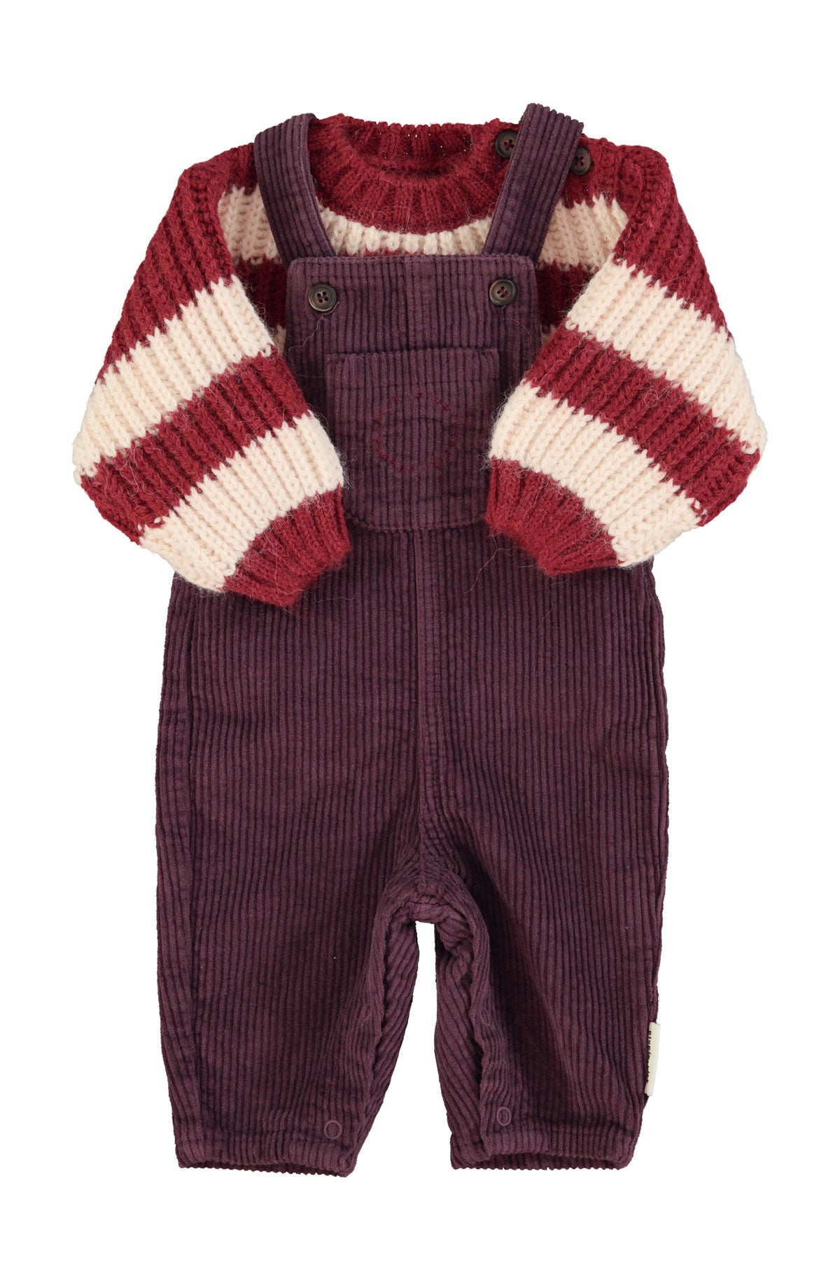 Kleine ontdekkingsreizigers opgelet! Deze superzachte baby tuinbroek van Piupiuchick is gemaakt van aubergine katoenen corduroy en is perfect om in te kruipen en spelen. Met handige drukknoopjes bij het kruis gaat aan- en uitkleden heel gemakkelijk. De broek heeft een schattig borstzakje met geborduurd bordeaux logo en een klein achterzakje. Een must-have voor avontuurlijke baby's!