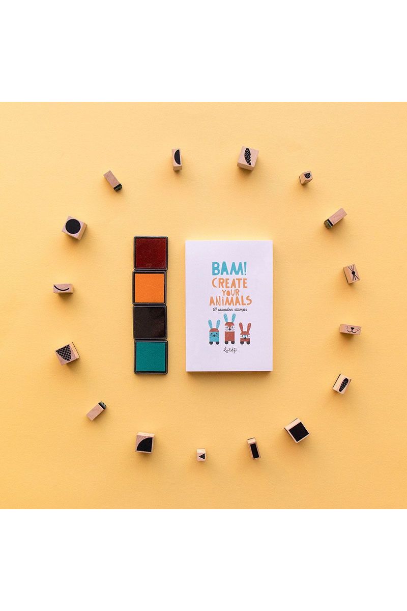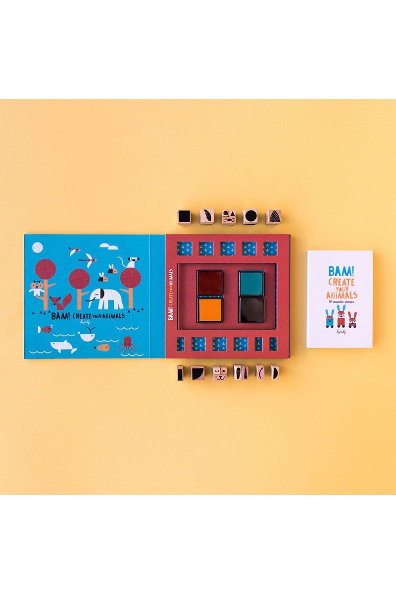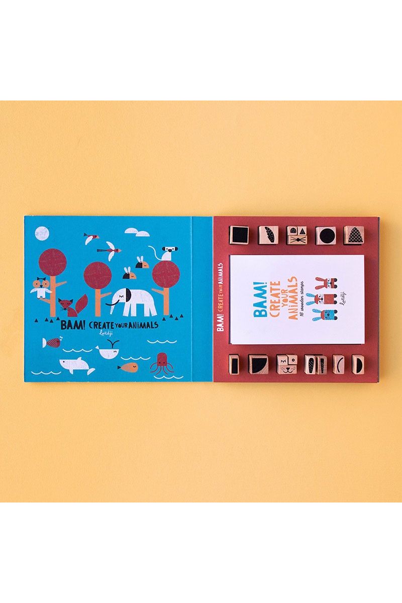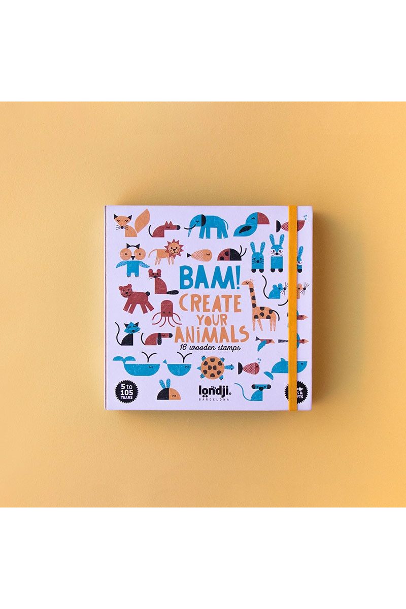 Laat de wildste dieren tot leven komen met de Bam! Animals stempelset van Londji! Combineer de 16 houten stempels en 4 vrolijke inktkussentjes om leeuwen, olifanten, walvissen en meer te maken. Gebruik je fantasie en tover de mooiste beesten tevoorschijn in het inbegrepen notitieboekje. Een superleuke en creatieve activiteit voor jonge kunstenaars vanaf 5 jaar.