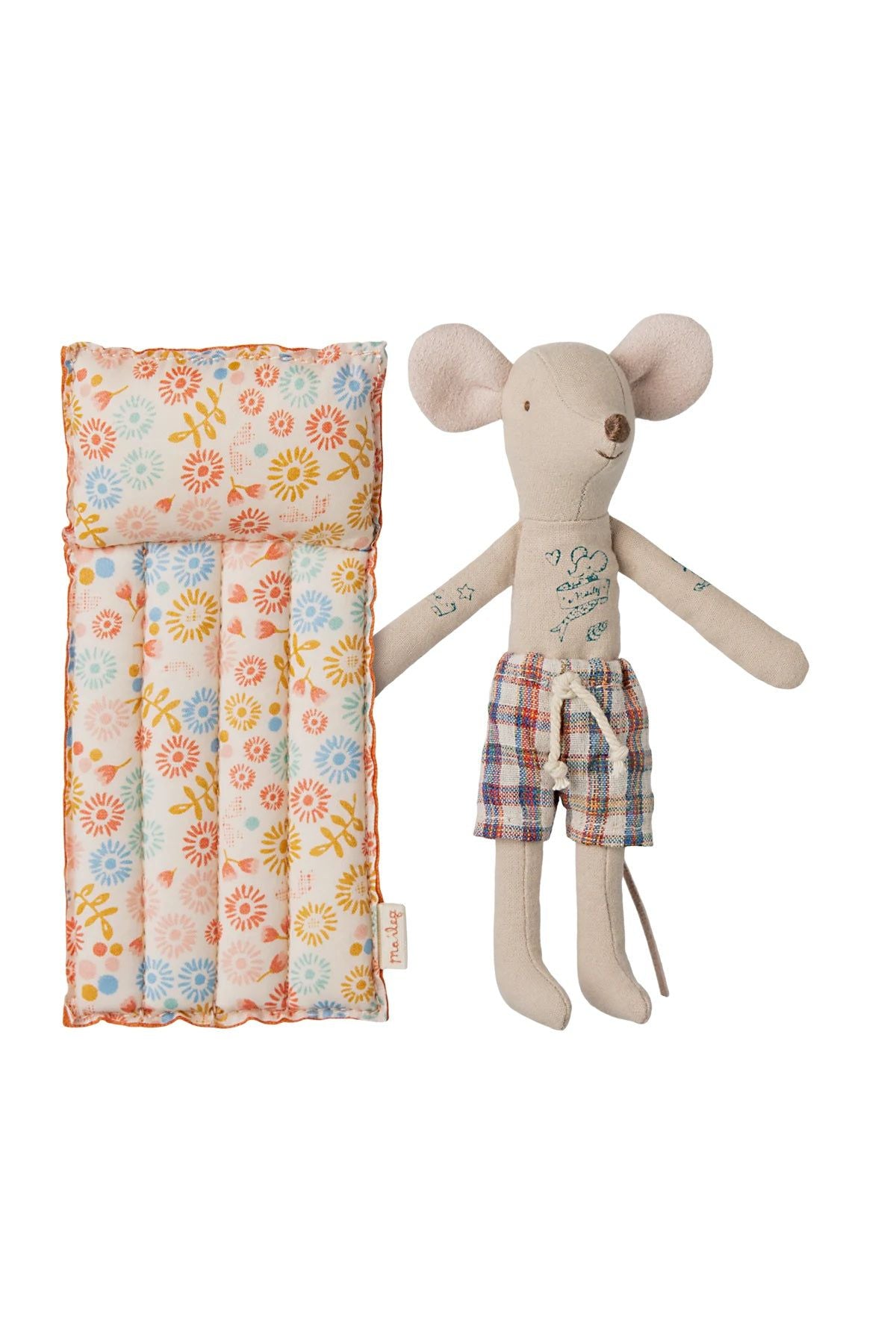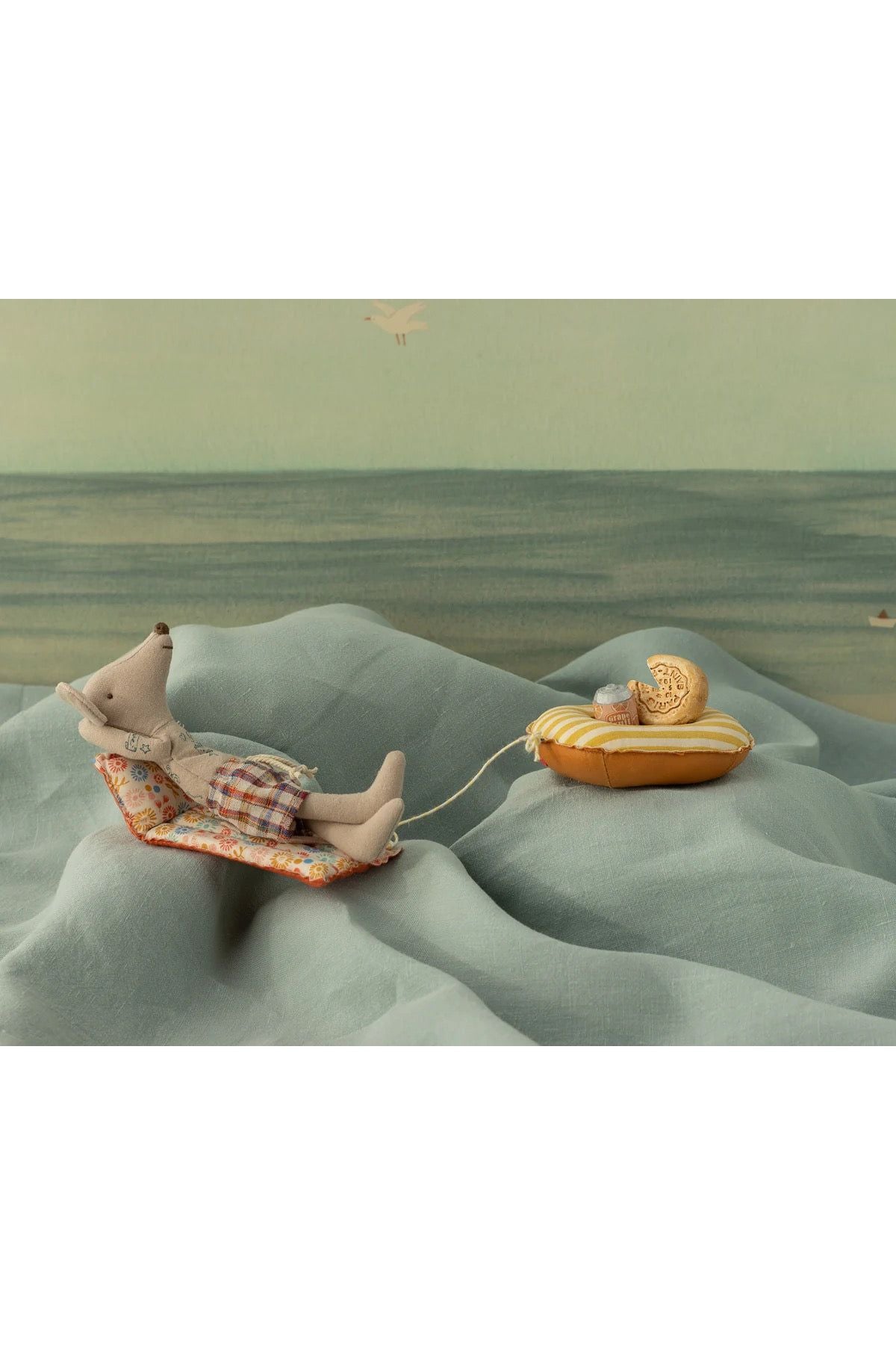 Laat je kleintje wegdromen met deze schattige Maileg strandmuis met luchtbedje, Papa Bloem! Deze vrolijke strandpapa is klaar voor een zonnige dag aan het strand met zijn kleurrijke luchtmatras. Gemaakt van zacht katoen, is hij perfect voor urenlang fantasierijk speelplezier en nodigt hij uit tot de liefste avonturen. Een heerlijk cadeau om de verbeelding van je kind te prikkelen en een glimlach op hun gezicht te toveren.