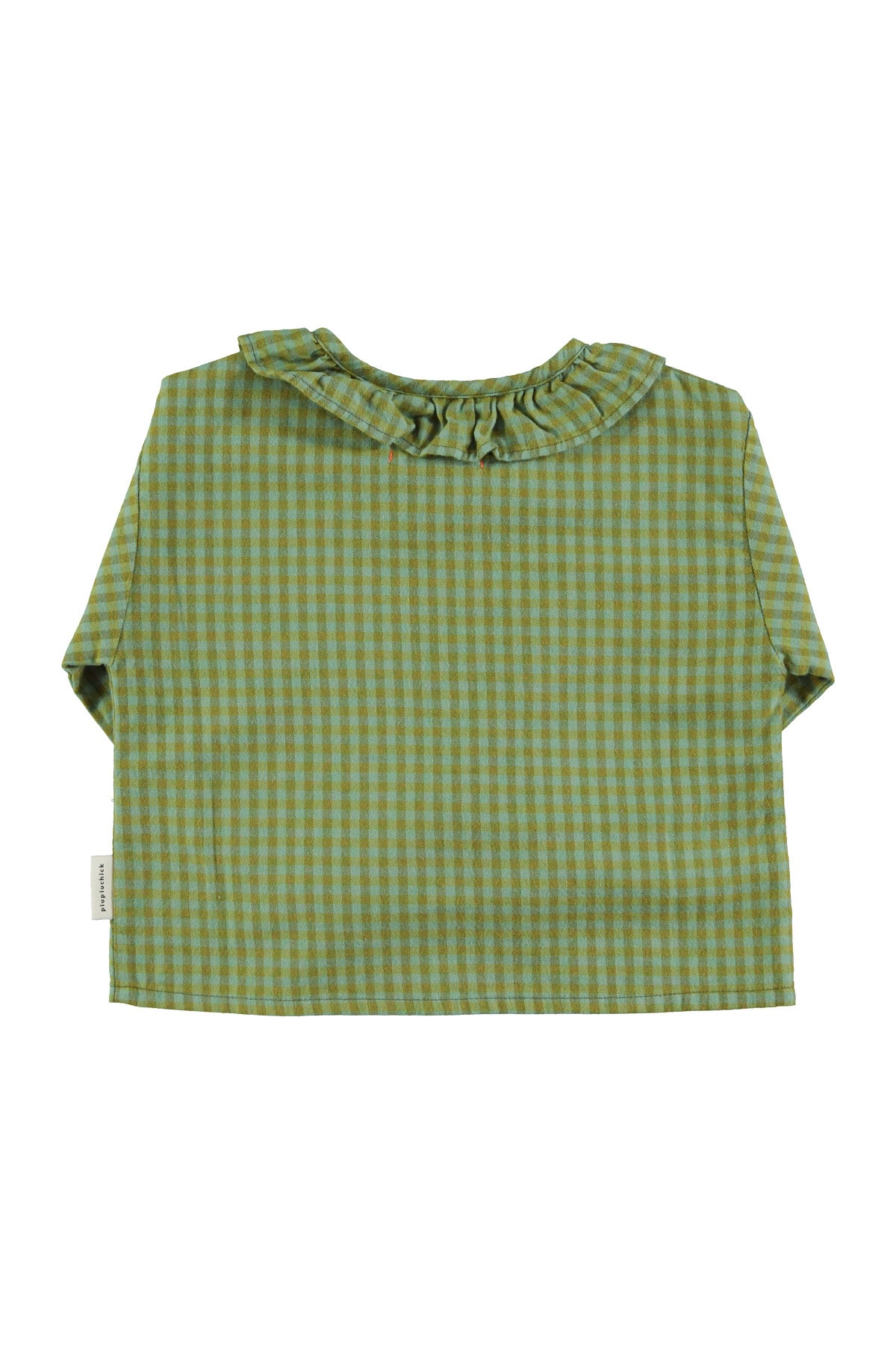 Deze vrolijke Blouse met kraag in groen ruitpatroon van Piupiuchick is perfect voor jouw kleine avonturier! De blouse heeft een lief rond, geplooid kraagje, knoopjes aan de voorkant en elastische manchetten. Gemaakt van 100% biologisch katoen in Portugal. Met dit comfortabele en stijlvolle item is spelen een feest!