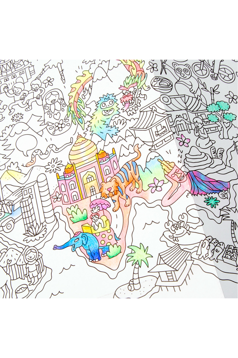 Ga op een wereldreis vanuit huis met de reusachtige COLORING POSTER - ATLAS van OMY! Dit is urenlang kleurplezier voor je kind, alleen of samen met het hele gezin. Ontdek al kleurend de vele kleine details die onze wereld zo bijzonder maken. Een leuke en educatieve manier om de wereld te verkennen en tegelijkertijd creatief bezig te zijn. Perfect voor kleine ontdekkingsreizigers die van kleuren houden!