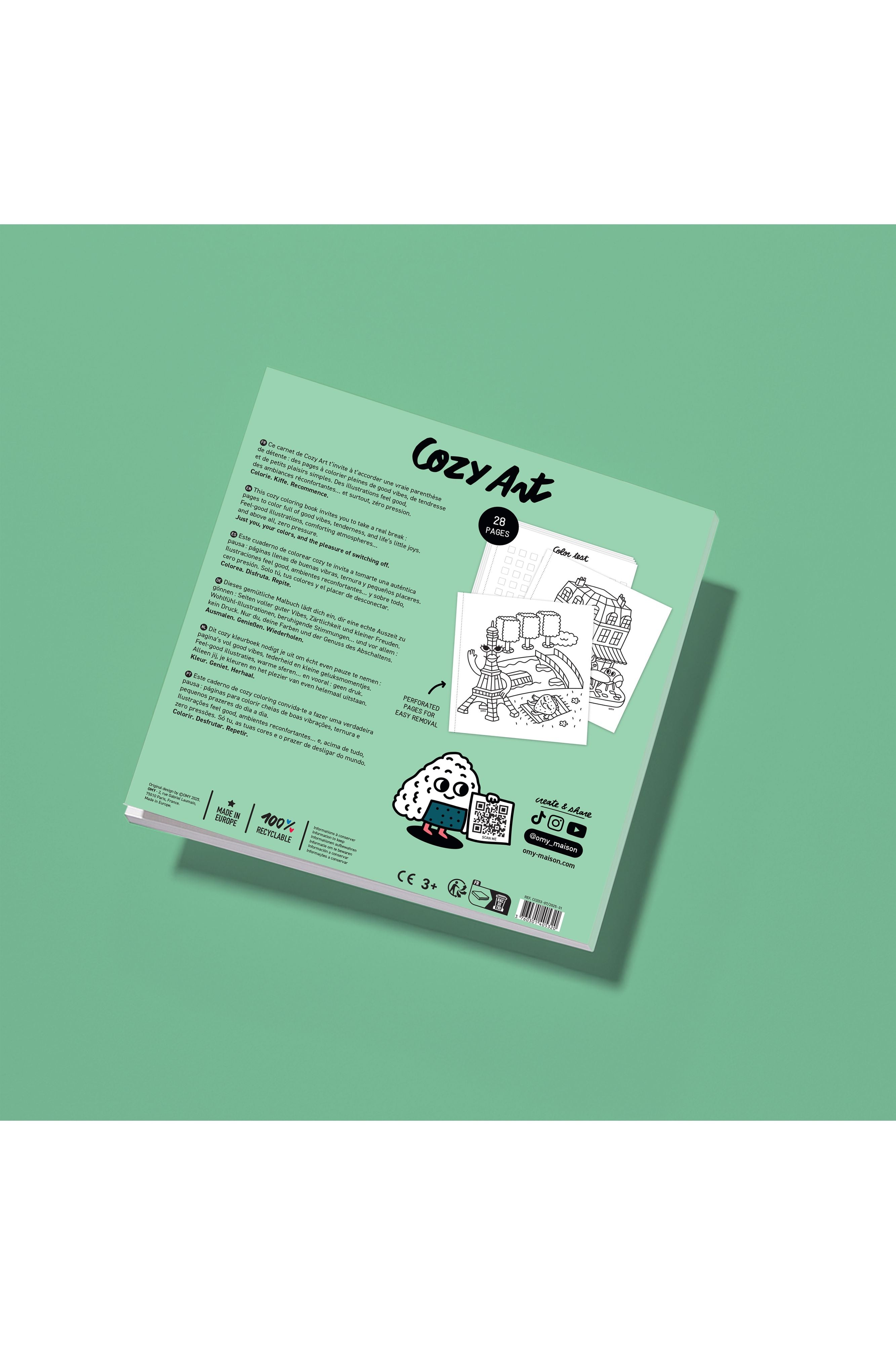 Duik in de charmante wereld van Parijs met COZY ART - PARIS van OMY! Dit kleurboek is perfect voor kleine kunstenaars die van ontspannen momenten houden. Laat je kindje heerlijk kleuren tussen schattige Parijse figuren, gouden croissants en iconische bezienswaardigheden zoals de Eiffeltoren. Dit notitieboek met 32 afscheurbare pagina's staat vol met vrolijkheid en gezellige scènes. Geen druk, alleen puur kleurplezier!