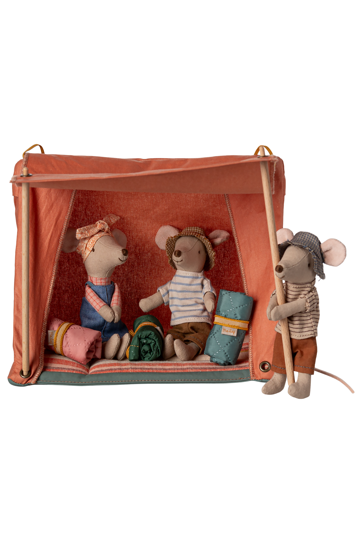 Laat de kleintjes wegdromen bij het idee van een kampeeravontuur met de Happy Camper Tent voor muizen van Maileg! Dit schattige tentje is perfect voor de kleine muisvriendjes en nodigt uit tot urenlang fantasierijk speelplezier. Gemaakt met oog voor detail en kwaliteit, is het de ideale plek voor knusse verhaaltjes en gezellige kampeernachten, gewoon in de kinderkamer. Een heerlijk plekje voor hun Maileg-wereld!