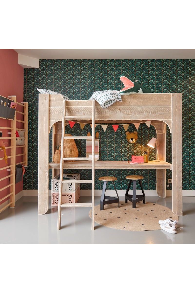Heerlijk slapen hoog in de lucht! De Hoogslaper Jacky van Saartje Prum is een stoere hoogslaper, perfect voor grotere kinderen. Deze hoogslaper is super handig voor kamers met wat minder ruimte, want onder het bed is plek voor een ruim bureaublad van 2 meter breed, ideaal voor huiswerk of creatieve projecten. In dit fijne bed past een matras van 90x200cm en de lattenbodem zit er al bij! Bij Saartje Prum geloven we dat slapen en spelen perfect samengaan. Laat je kind dromen van avonturen hoog boven de grond met de Hoogslaper Jacky!