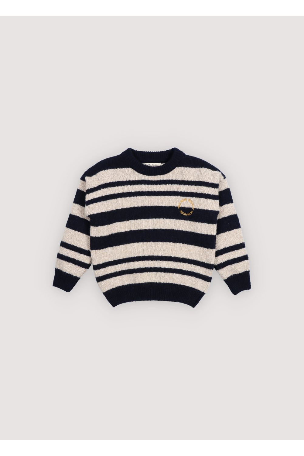 Hallo stoere kids! Maak kennis met de Jorge Jumper van The New Society, de perfecte trui voor jouw avonturen. Deze gestreepte klassieker in twee kleuren (Infinite Navy) is superzacht, want hij is gemaakt met een flinke dosis wol, waarvan een deel gerecycled is. Met zijn pure, klassieke en retro stijl is deze warme trui ideaal voor de herfst en winter. Zo blijf je lekker behaaglijk terwijl je buiten speelt of knus op de bank zit! Handwasje, en hij is weer klaar voor de volgende speeldag!