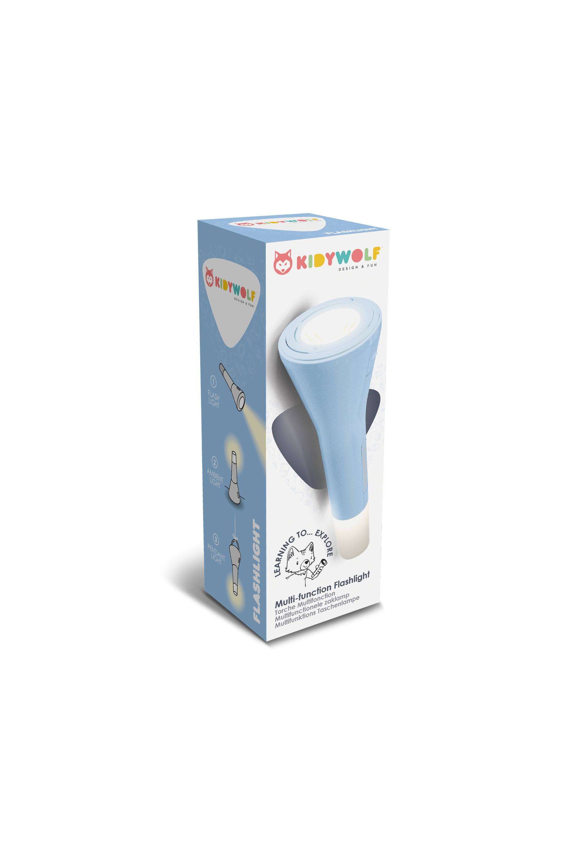 Laat de avonturen van je kind stralen met de Kidywolf 3-in-1 zaklamp blauw! Deze veelzijdige lamp is de perfecte metgezel voor kleine ontdekkingsreizigers vanaf 4 jaar. Met drie handige functies (zaklamp, sfeerlamp, hanglamp) en drie intensiteitsniveaus, stimuleert de KIDYFLASHLIGHT de verbeelding en biedt het een veilig gevoel. Ideaal om verhaaltjes te lezen, spelletjes te spelen of monsters weg te jagen. Een speelse en geruststellende toevoeging voor elke kinderkamer!