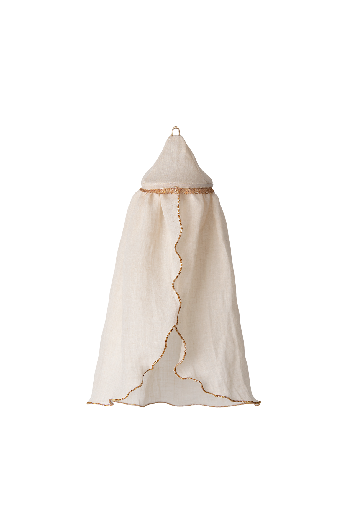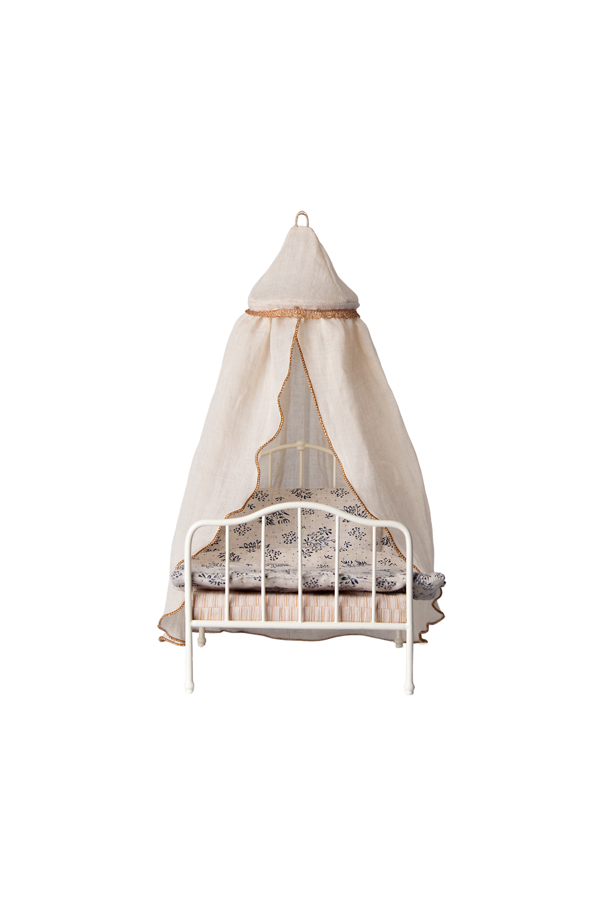 Creëer een dromerig slaapplekje voor de geliefde Maileg vriendjes van je kleintje met deze schattige Miniature Bed Canopy in crème! Dit betoverende hemelbedje tovert elke Maileg kamer om tot een magische oase van rust en speelplezier. Perfect voor kleine verhaaltjes en knusse nachten. Maileg staat bekend om hun oog voor detail en hoogwaardige kwaliteit, en deze bedhemel is daar geen uitzondering op. Een prachtige toevoeging voor elk poppenhuis!