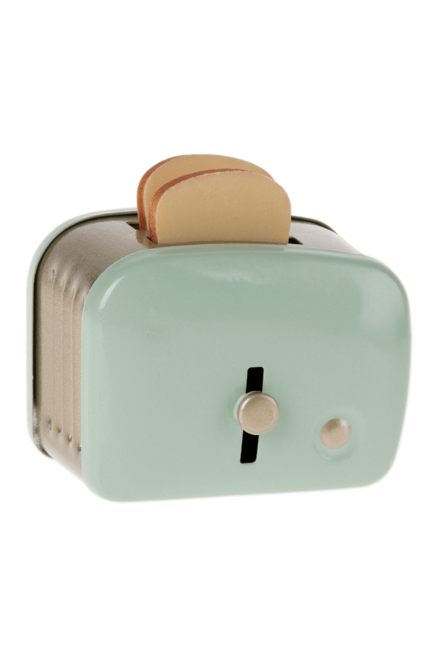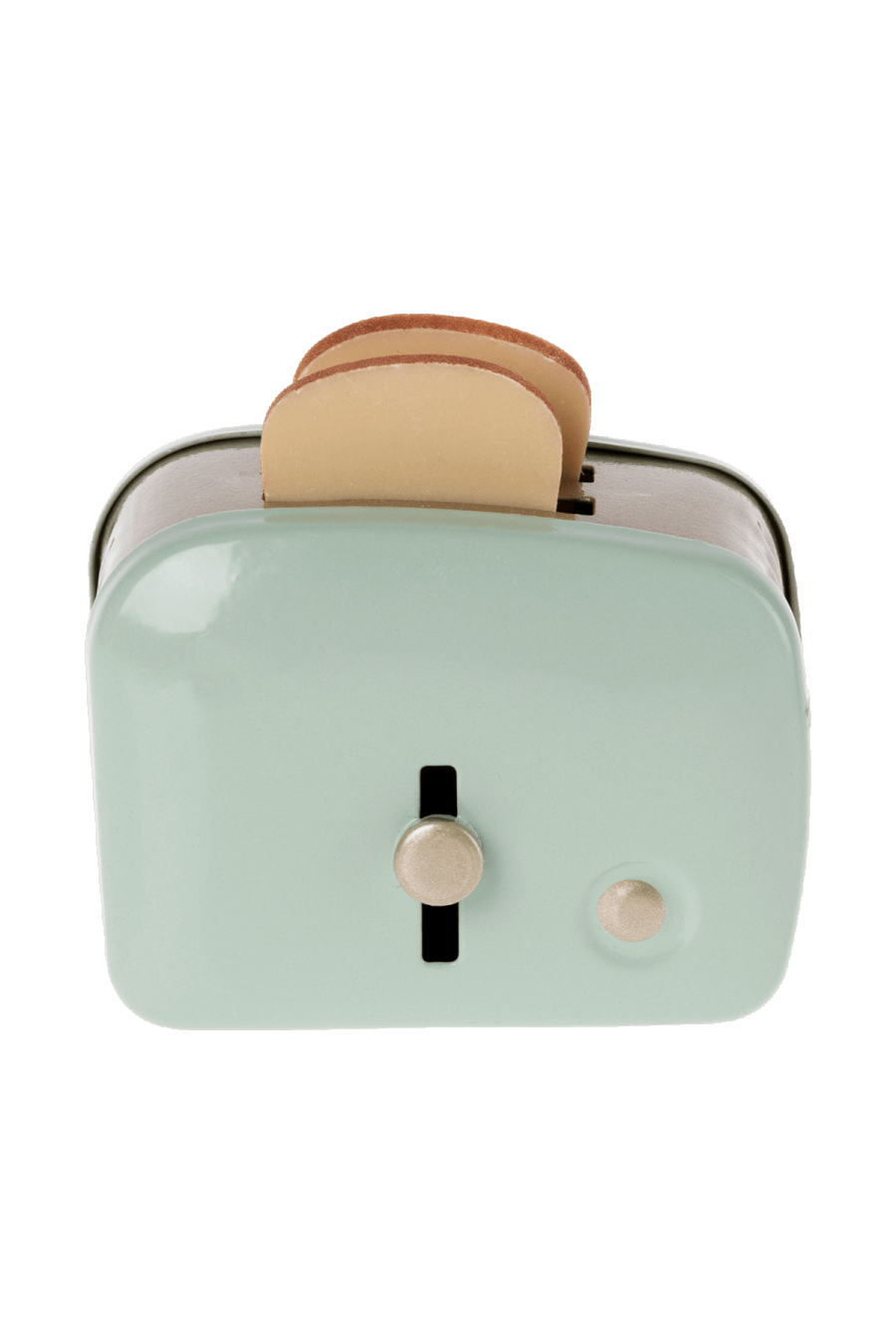 Begin de dag heerlijk met de Maileg Miniature Toaster With Bread in Mint! Dit schattige metalen broodroostertje komt met twee sneetjes brood en is perfect voor de kleine Maileg-muisjes. Elk detail is met de hand gemaakt, wat zorgt voor unieke variaties. Het stimuleert fantasierijk spel en laat je kindje genieten van gezellige ontbijtmomentjes in het poppenhuis. Een onmisbaar item voor de Maileg kinderkamer!