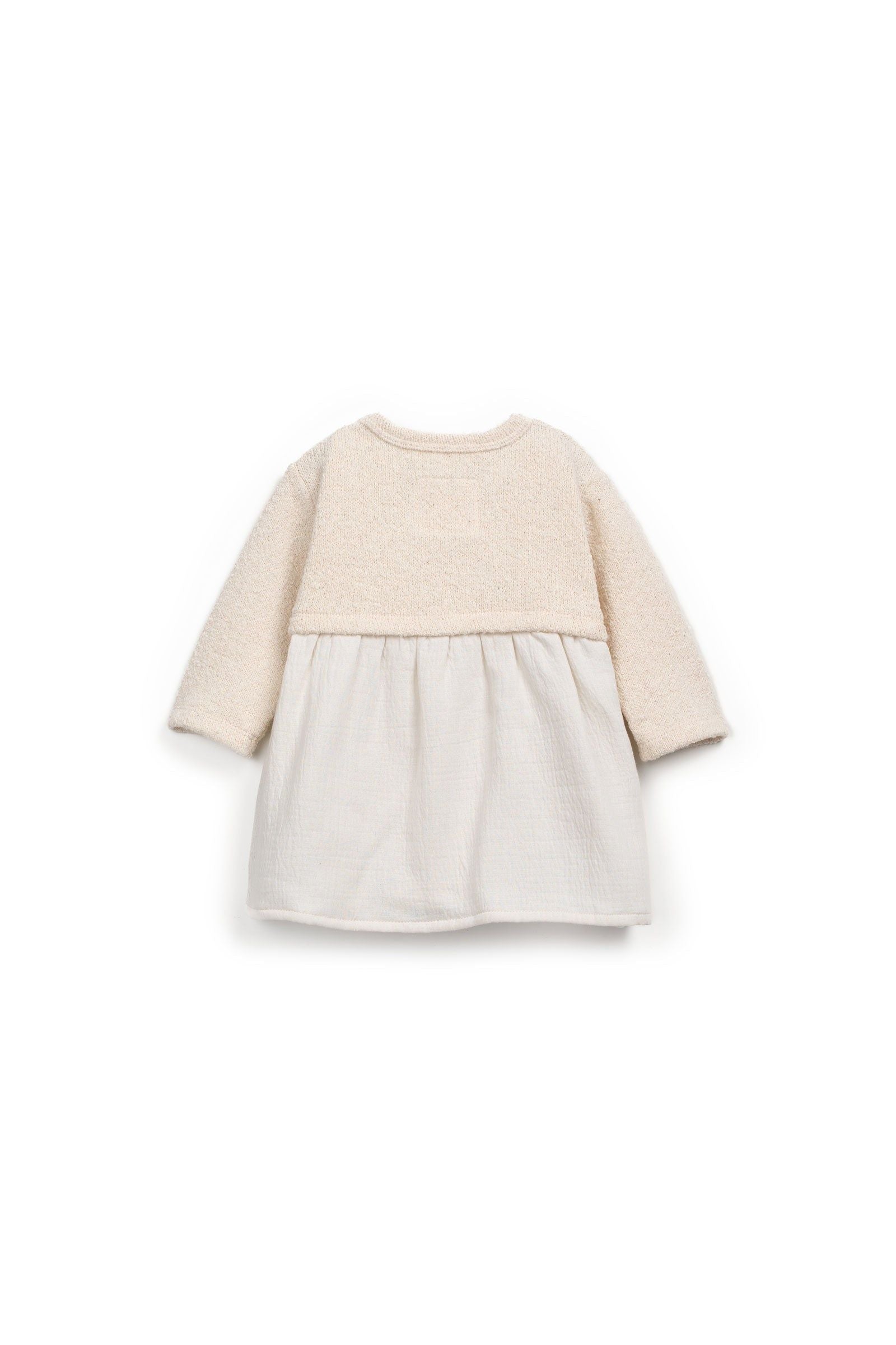 Dit schattige Mixed dress in de kleur Pencil van Play Up is perfect voor de herfst en winter. Het is een klassiek, off-white jurkje voor baby's, gemaakt met veel aandacht voor duurzaamheid. Het materiaal bevat biologisch en regeneratief katoen. Play Up, een familiebedrijf uit Portugal, staat bekend om haar bewuste en lieve kinderkleding. Een heerlijk zachte en stijlvolle toevoeging aan de garderobe van je kleintje!