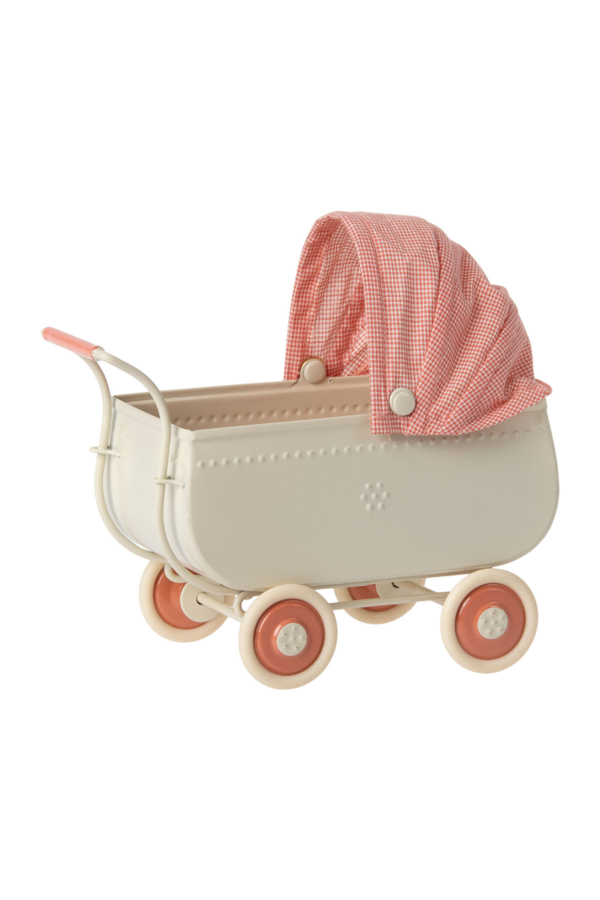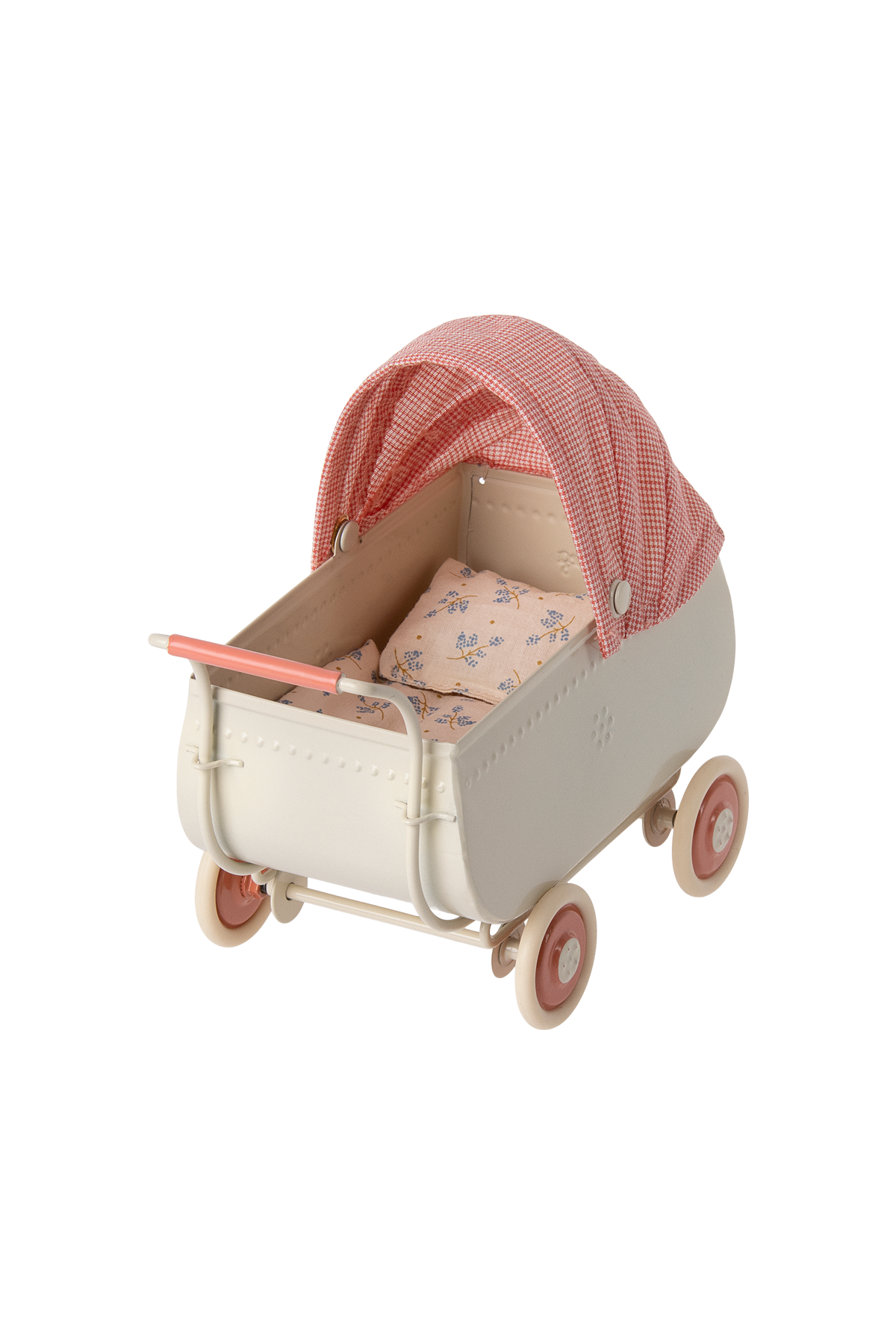 Laat je kleintje dromenland verkennen met de schattige Maileg Pram, Micro - Coral! Deze prachtige kinderwagen, perfect voor Maileg-muisjes, nodigt uit tot urenlang fantasierijk speelplezier. Gemaakt van metaal, plastic en katoen met gerecycled polyester, is deze kinderwagen 15 cm hoog, 10 cm breed en 17 cm diep, ideaal voor kindjes vanaf 3 jaar. Een liefdevol cadeau dat de creativiteit van je kind stimuleert en garant staat voor de liefste avonturen.