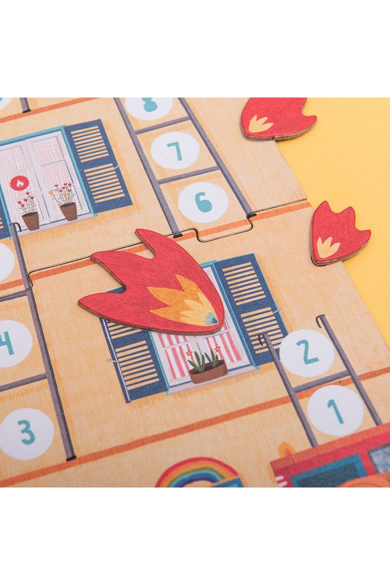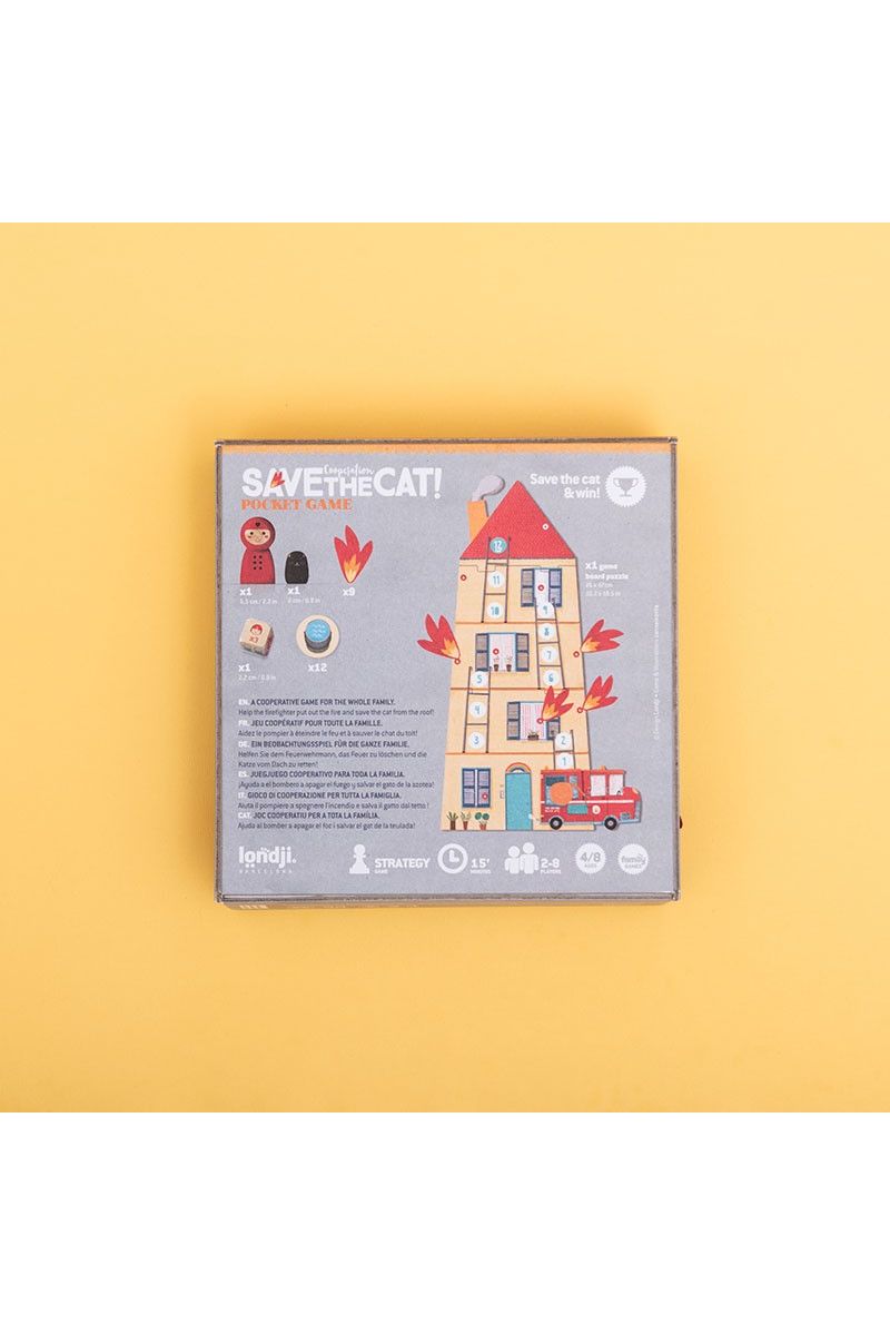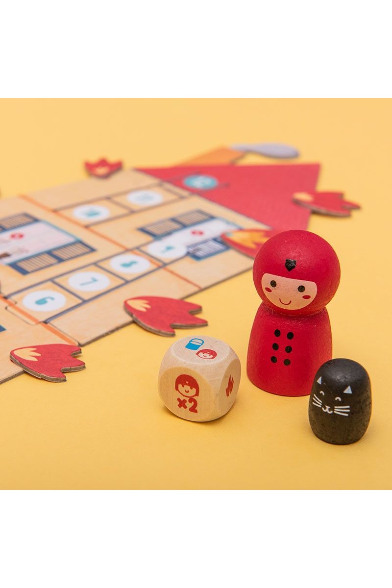 Help de brandweer de brand blussen en het katje op het dak redden! Dit coöperatieve bordspel van Londji is perfect voor kleine reizigers. Werk samen om het katje te bereiken, maar let goed op het water! Een leuk zakformaat spel voor kinderen vanaf 4 jaar, dat teamwerk en tellen aanmoedigt terwijl je op een speelse manier brandweerman bent.