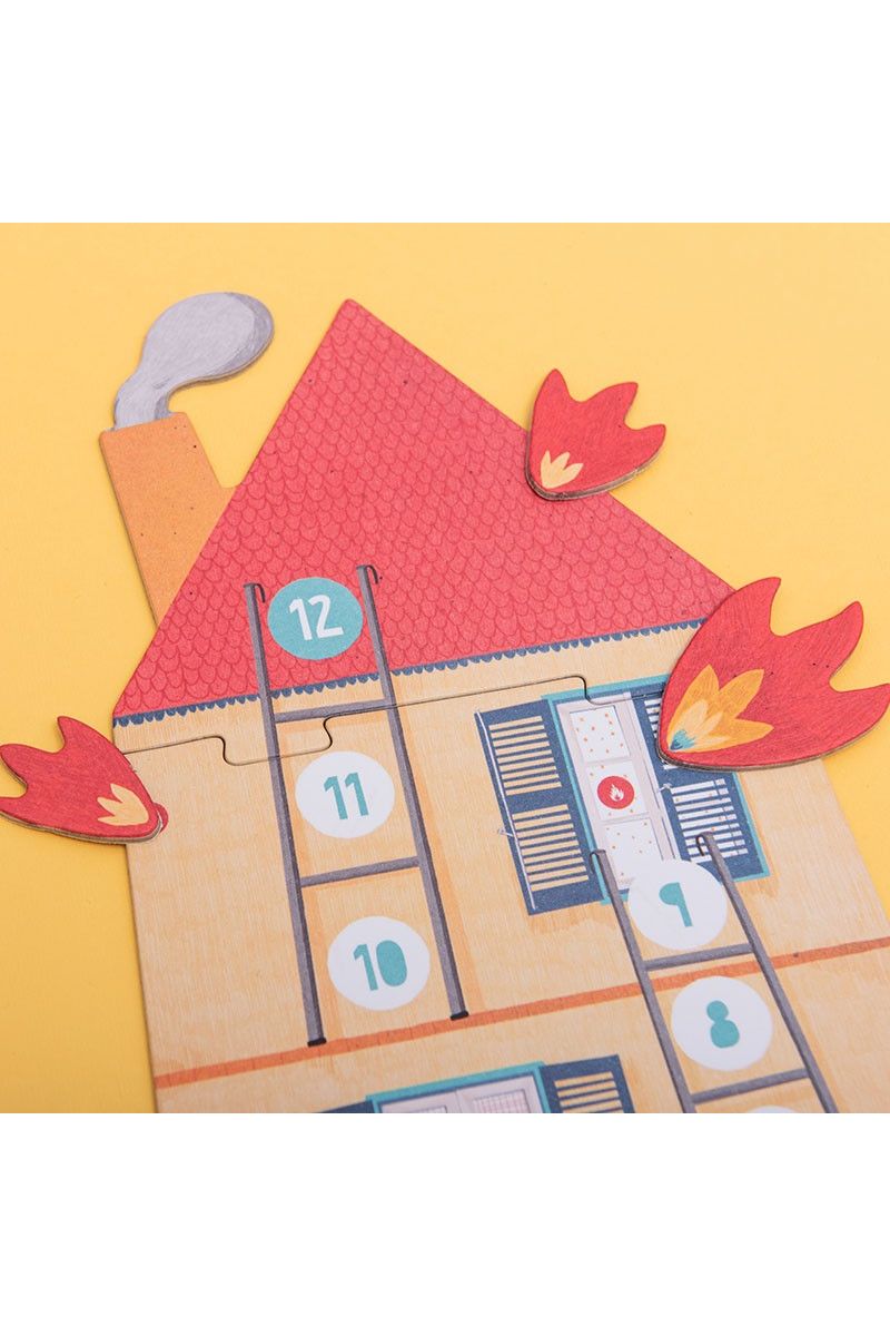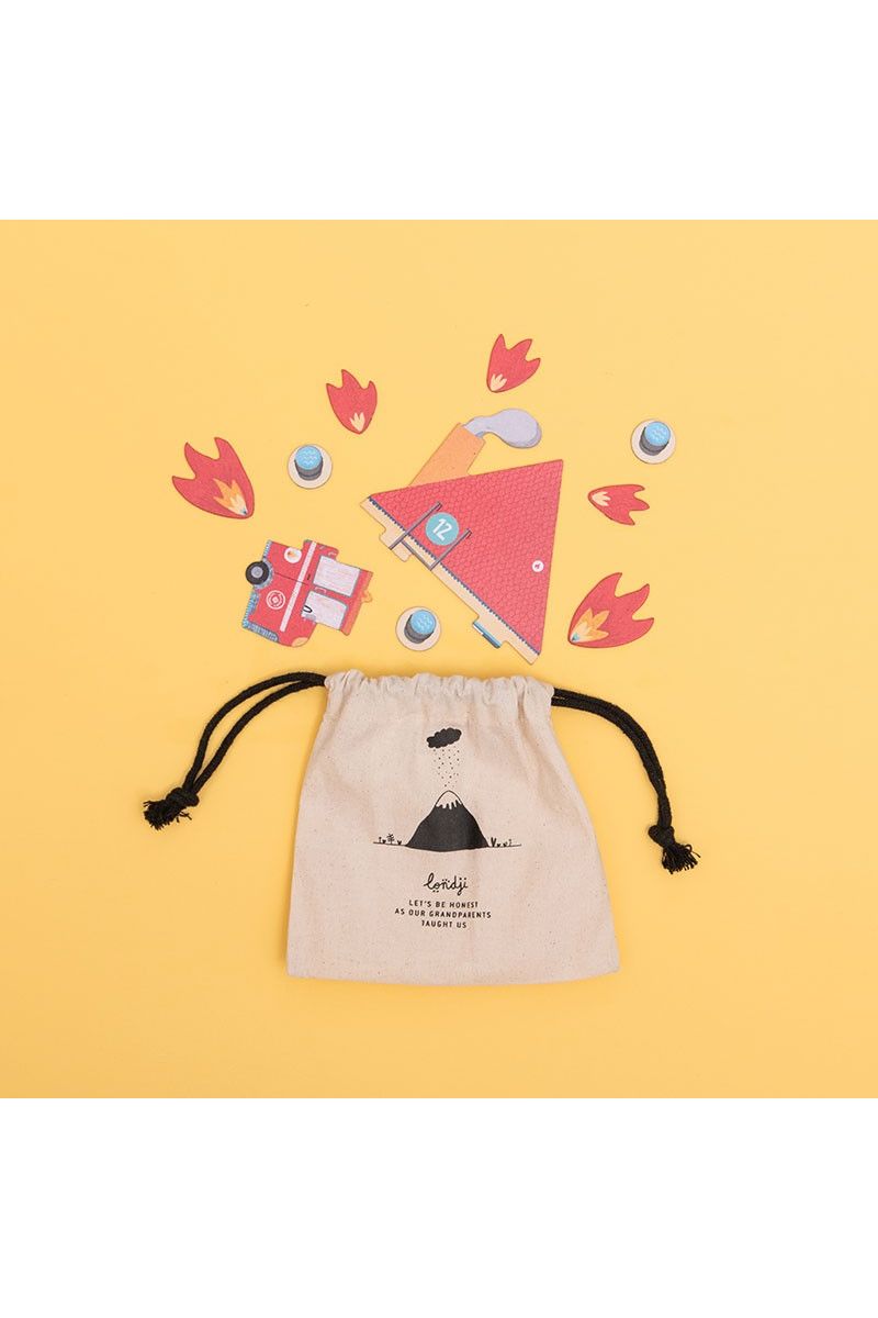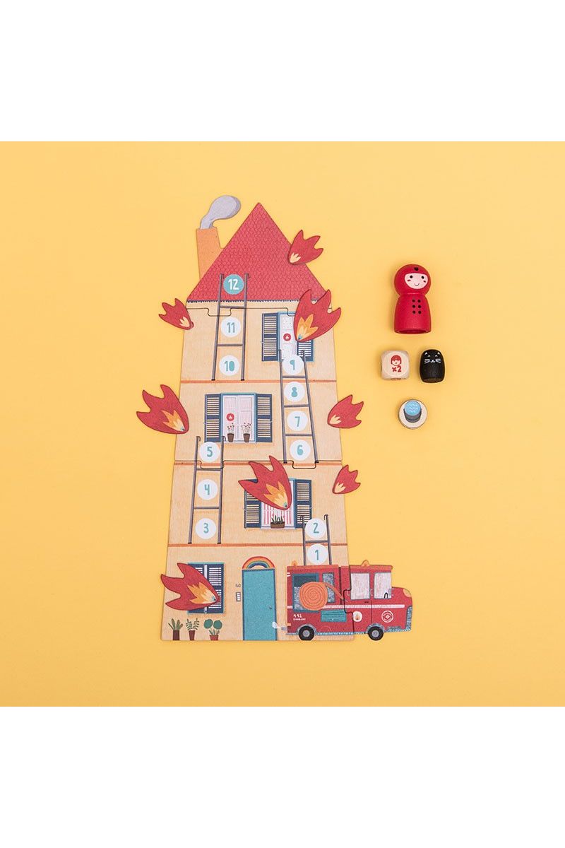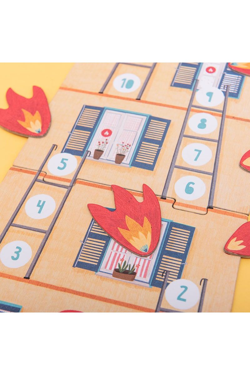 Help de brandweer de brand blussen en het katje op het dak redden! Dit coöperatieve bordspel van Londji is perfect voor kleine reizigers. Werk samen om het katje te bereiken, maar let goed op het water! Een leuk zakformaat spel voor kinderen vanaf 4 jaar, dat teamwerk en tellen aanmoedigt terwijl je op een speelse manier brandweerman bent.