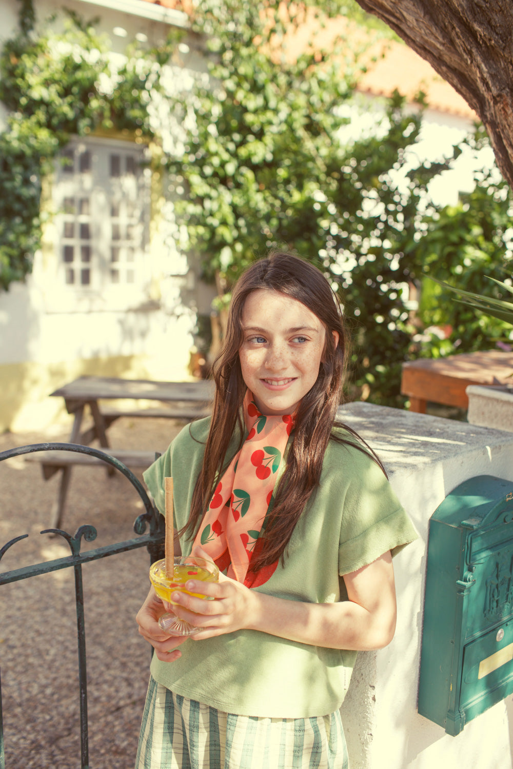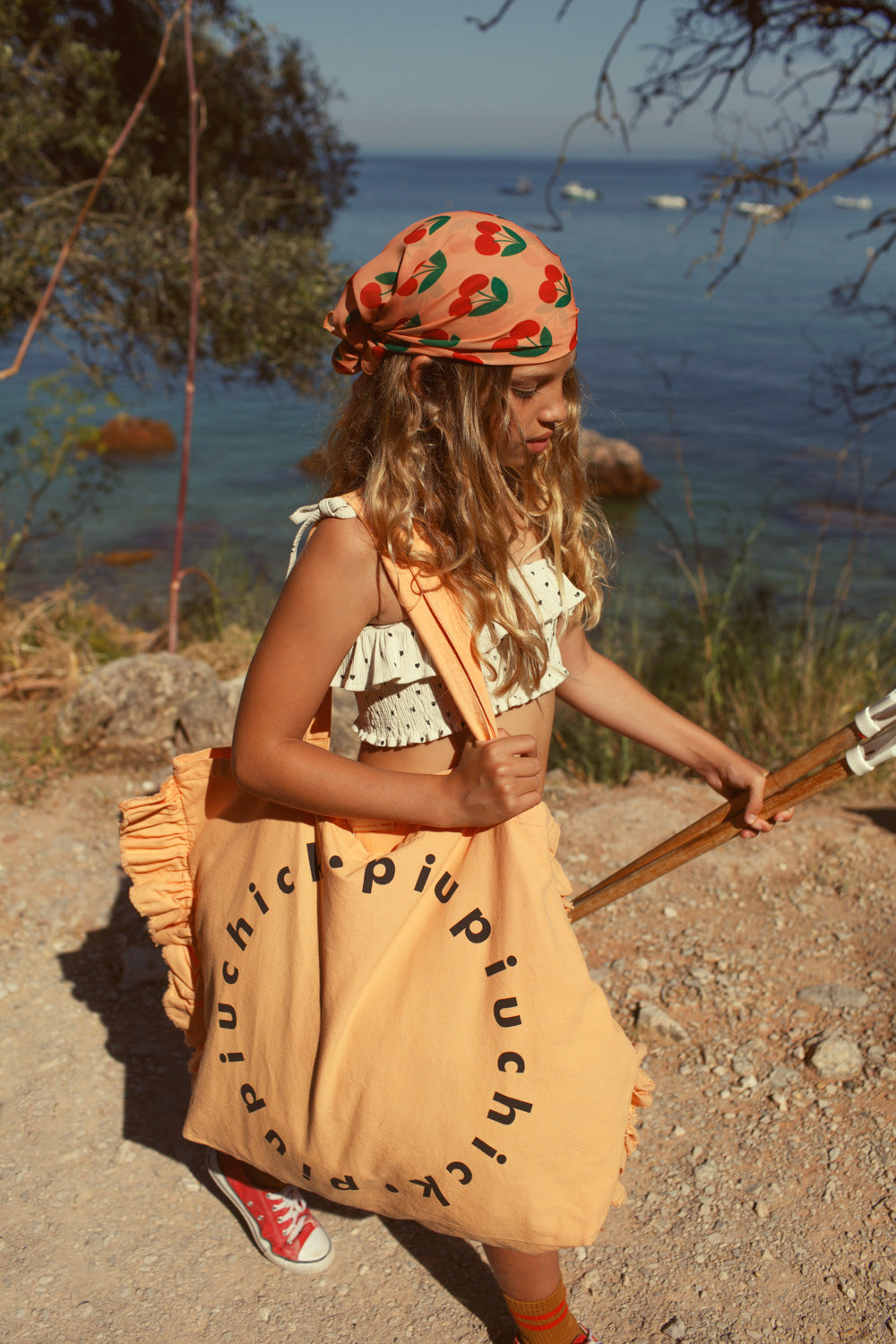 Deze zijdezachte bandana van Piupiuchick is perfect voor vrolijke Kids en Teens! Het Portugese merk staat bekend om zijn retro kinderkleding met een moderne, kleurrijke twist. De koraalkleurige bandana met leuke kersenprint is een speelse accessoire om je outfit helemaal af te maken. Piupiuchick richt zich op het gevoel van plezier dat kinderen ervaren tijdens het spelen. Een chic en kleurrijk detail voor elke dag vol avontuur.