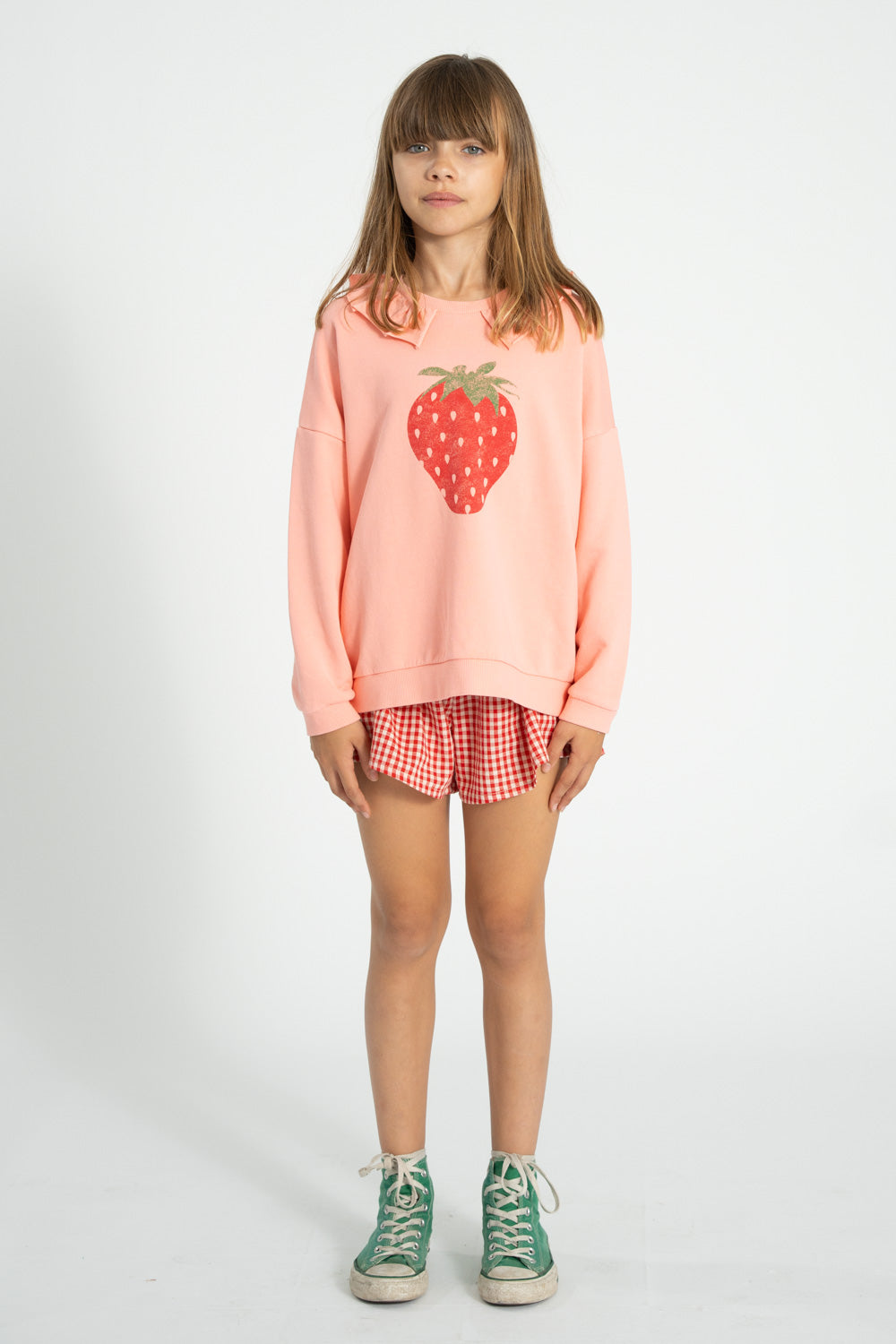 Dit schattige sweatshirt van Piupiuchick is perfect voor speelse avonturen! Gemaakt van 100% biologisch katoenfleece, is deze lichtroze trui met kraag en vrolijke aardbeienprint heerlijk zacht. Piupiuchick, het Portugese merk, staat bekend om zijn retro kinderkleding met een moderne, kleurrijke en chique twist. Laat je kindje comfortabel de wereld ontdekken in deze leuke trui!