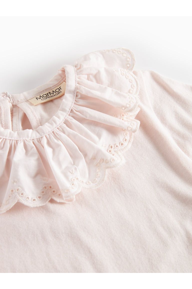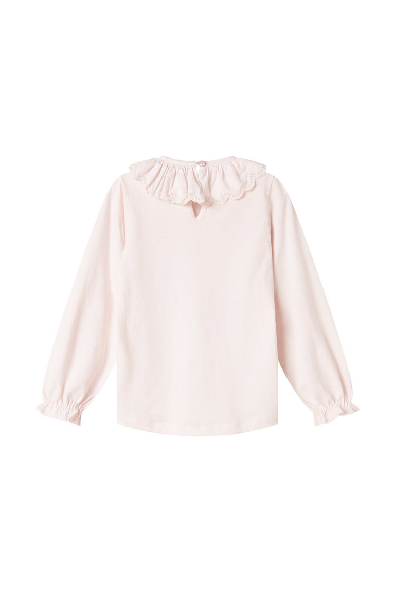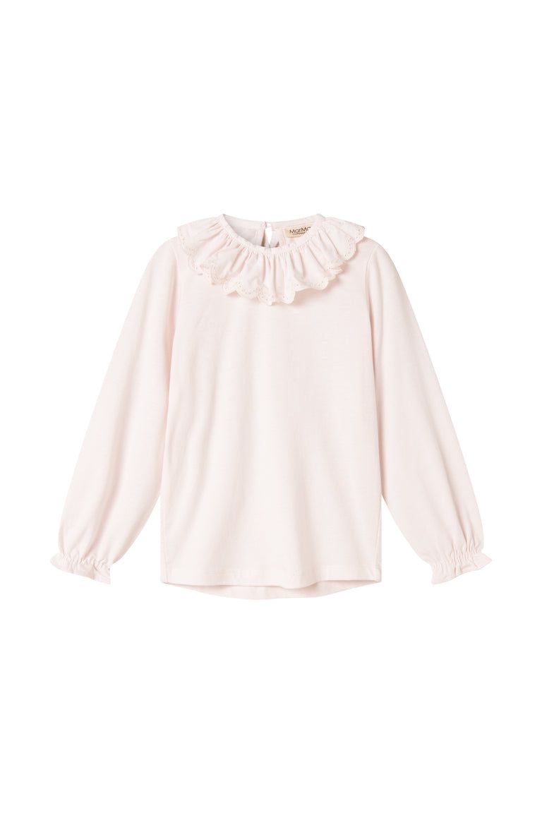 Laat je kleintje stralen in deze prachtige Talla Frill blouse van MarMar Copenhagen! Dit schattige shirt met lange mouwen, in de zachte kleur Lilac Frost, is gemaakt van een heerlijke mix van modal en biologisch katoen. Het heeft een ronde kraag en fijne kanten details. Dankzij de elastische manchetten en knoopsluiting aan de achterkant is het super comfortabel en makkelijk aan te trekken. Perfect voor speelse dagen vol knuffels en avonturen.